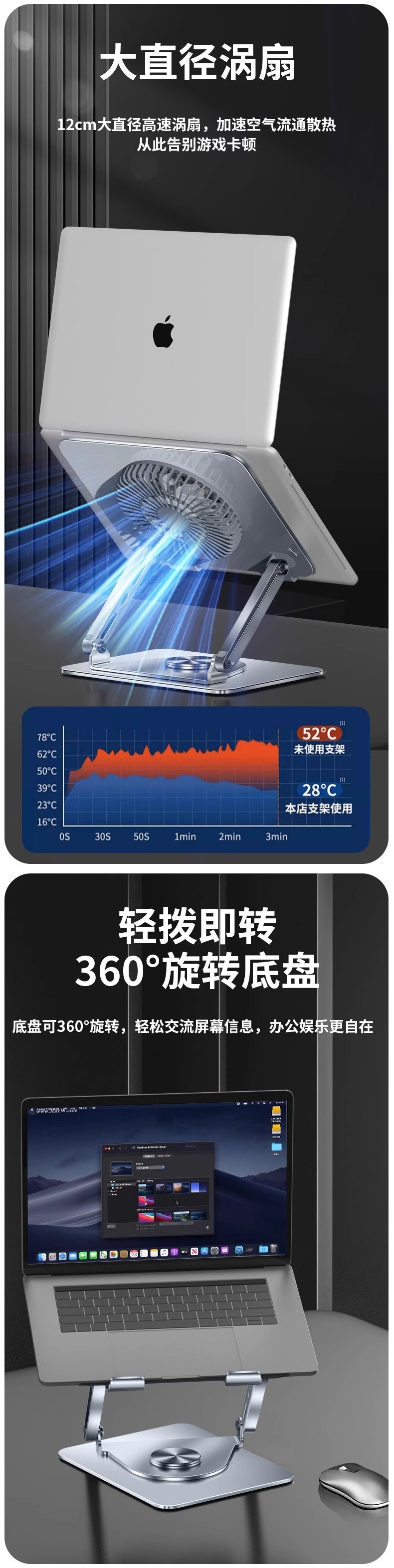 인기 판매 컴퓨터 스탠드 노트북 냉각 베이스 360도 회전식 데스크탑 높이 조절식 리프팅 지지대스토어 가기