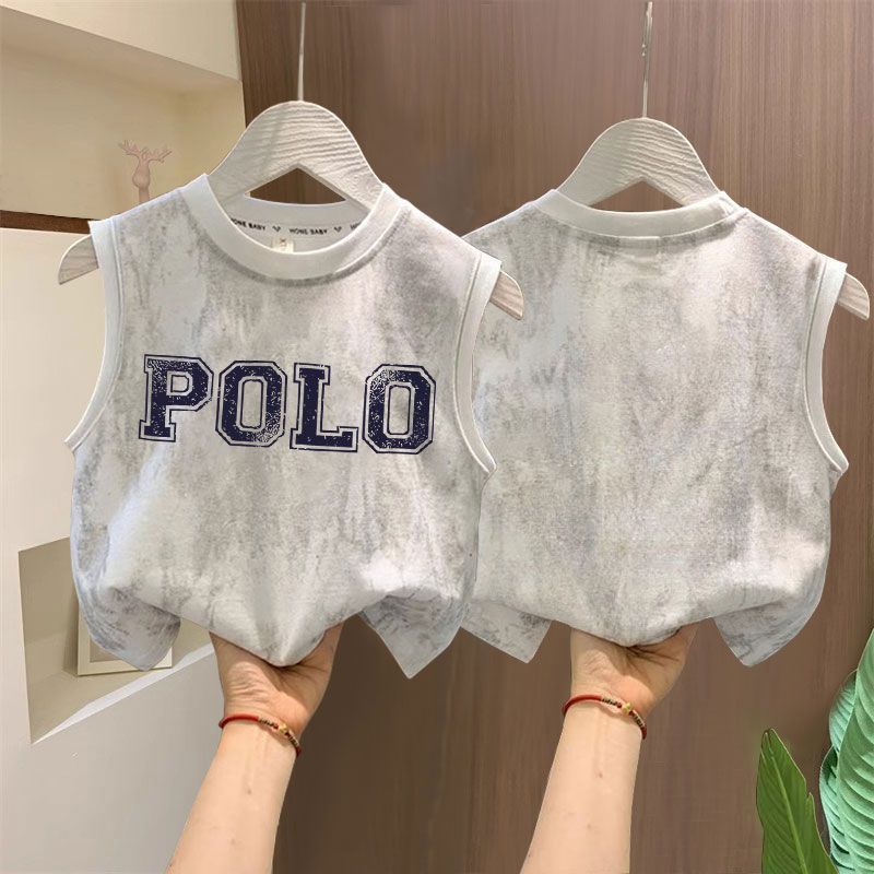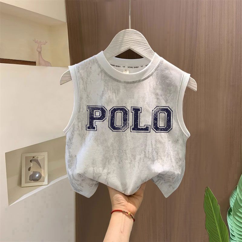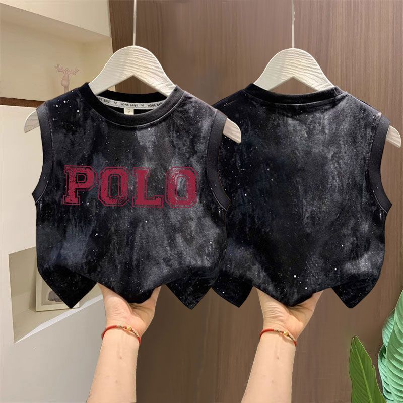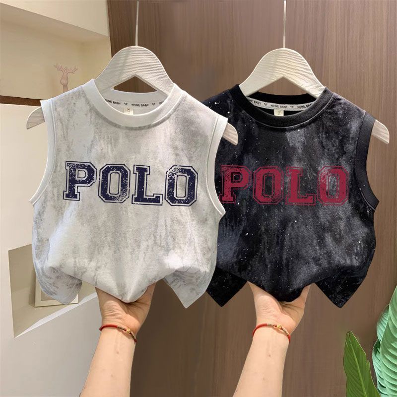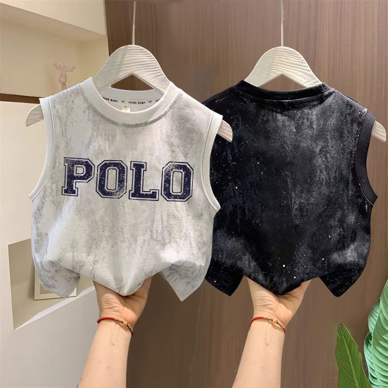 타이다이 루즈한 아동복 탑 t 잘생긴 소년 레터 프린트 민소매 티셔츠 소녀 한국식 심플 코튼 조끼