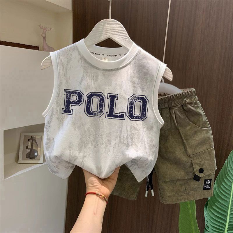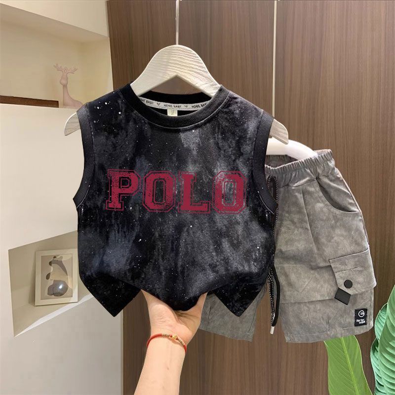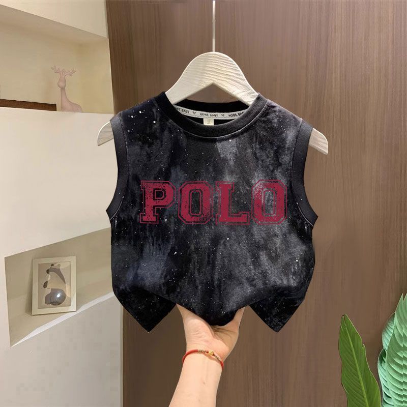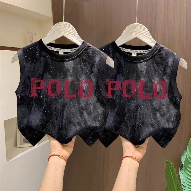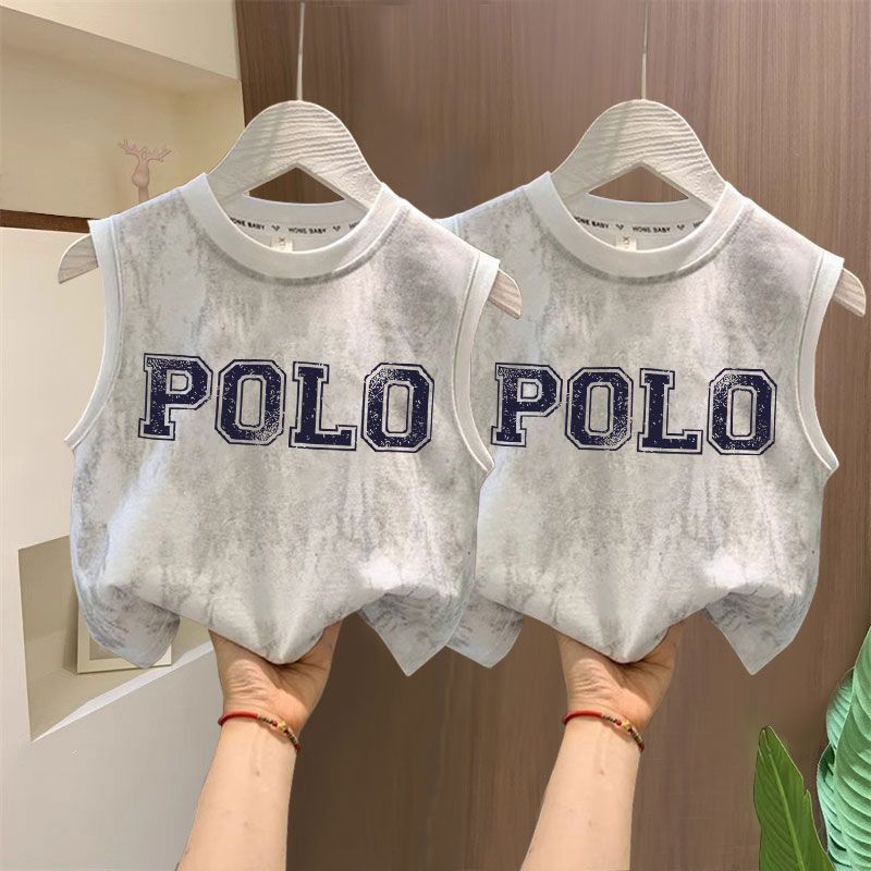 타이다이 루즈한 아동복 탑 t 잘생긴 소년 레터 프린트 민소매 티셔츠 소녀 한국식 심플 코튼 조끼