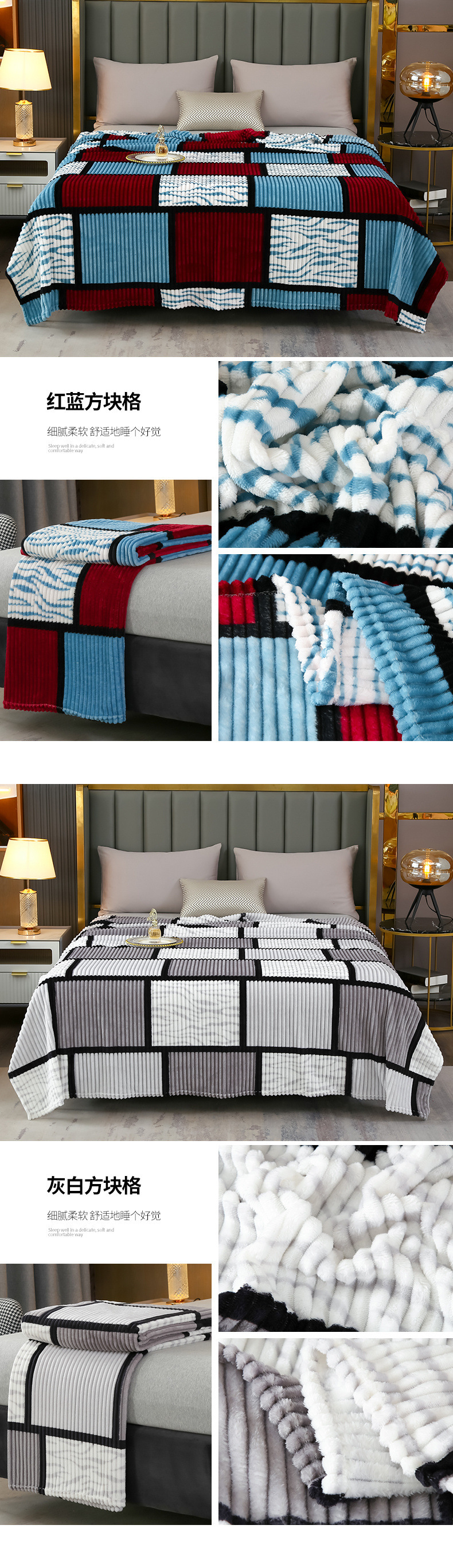 국경 간 격자 무늬 스트라이프 매직 벨벳 프린트 담요 플란넬 밀크 벨벳 커버 담요 싱글 및 더블 기숙사 시트스토어 가기