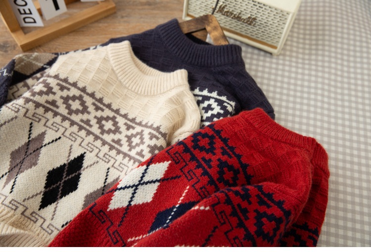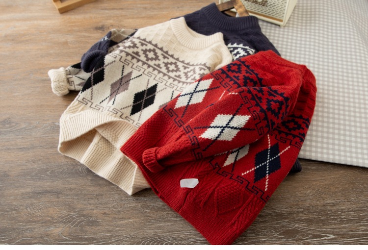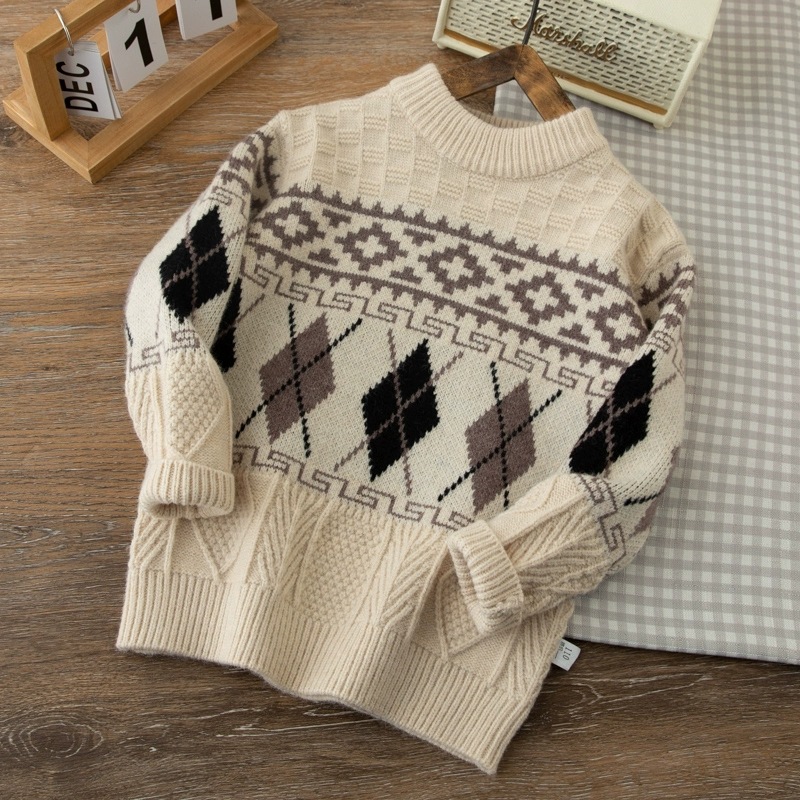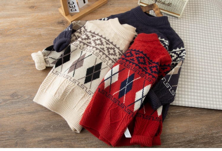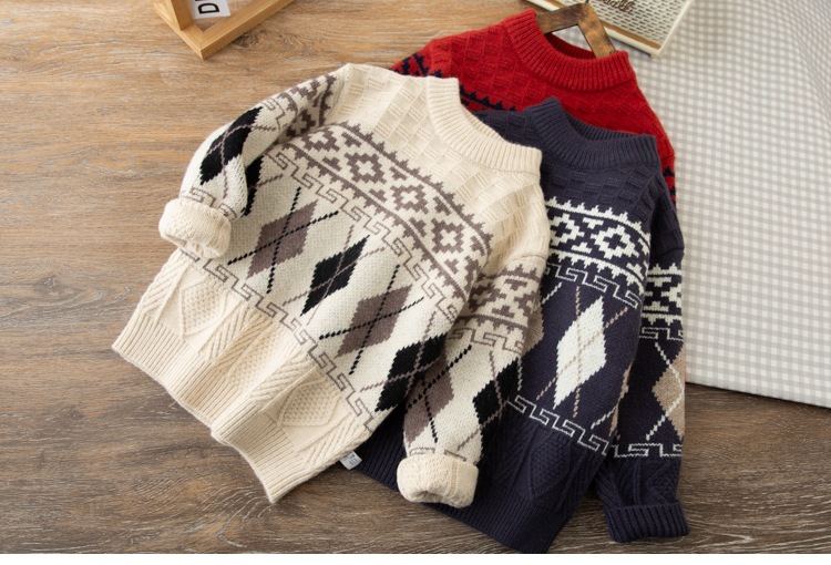 소년 스웨터 풀오버 2025 가을, 겨울 새로운 스타일 중대형 아동 스웨터 두꺼운 따뜻한 아마존 대외 무역 도매스토어 가기