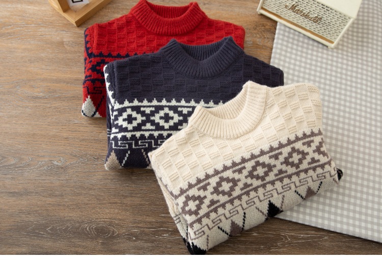 소년 스웨터 풀오버 2025 가을, 겨울 새로운 스타일 중대형 아동 스웨터 두꺼운 따뜻한 아마존 대외 무역 도매