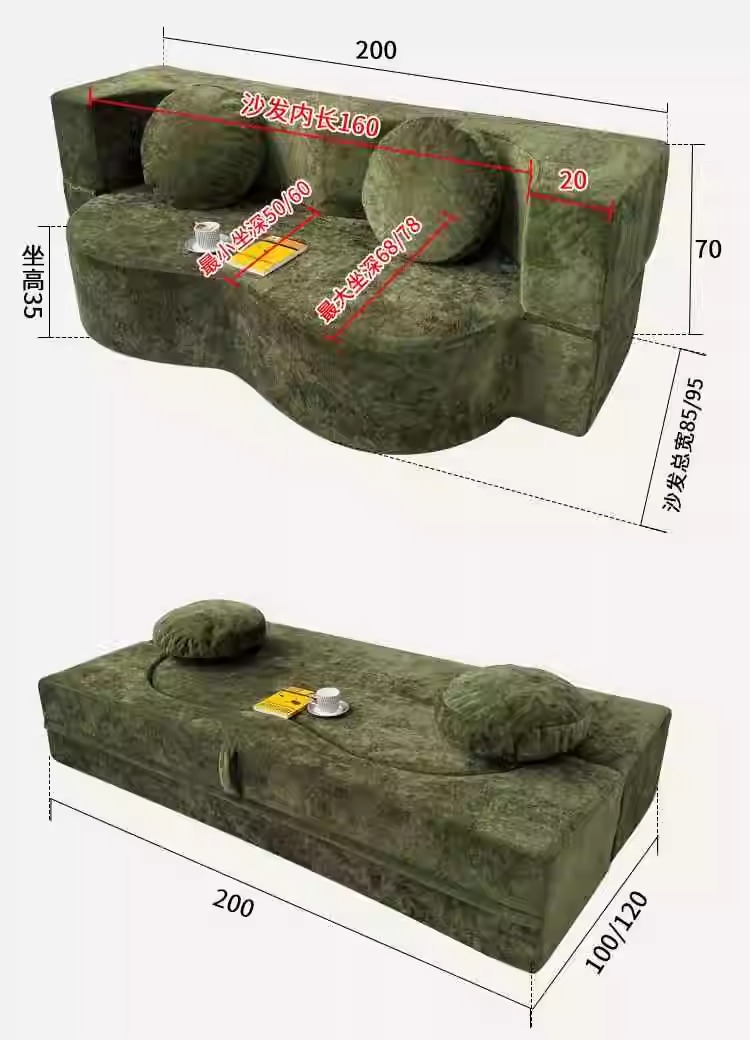 대외 무역 국경 간 압축 패브릭 소파 베드 일체형 소형 거실 분해 및 세탁 접이식 게으른 압축 소파 베드