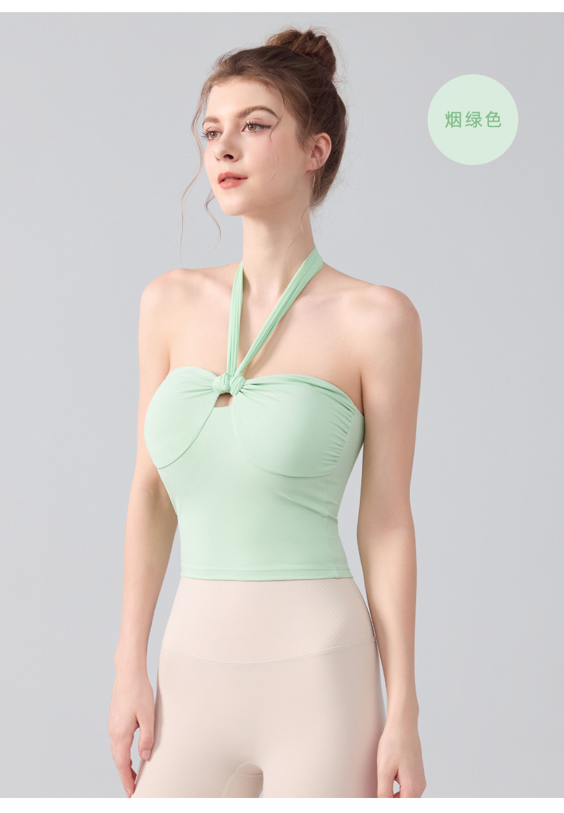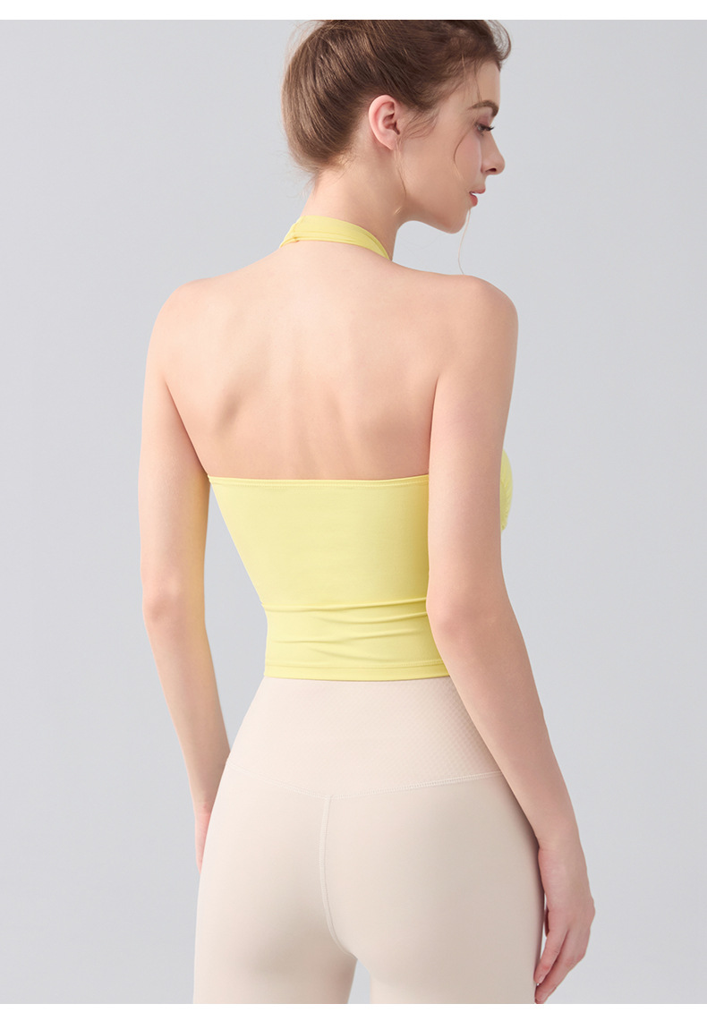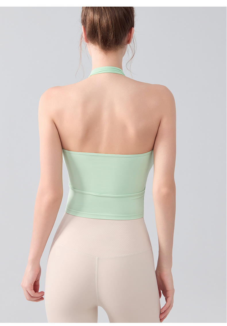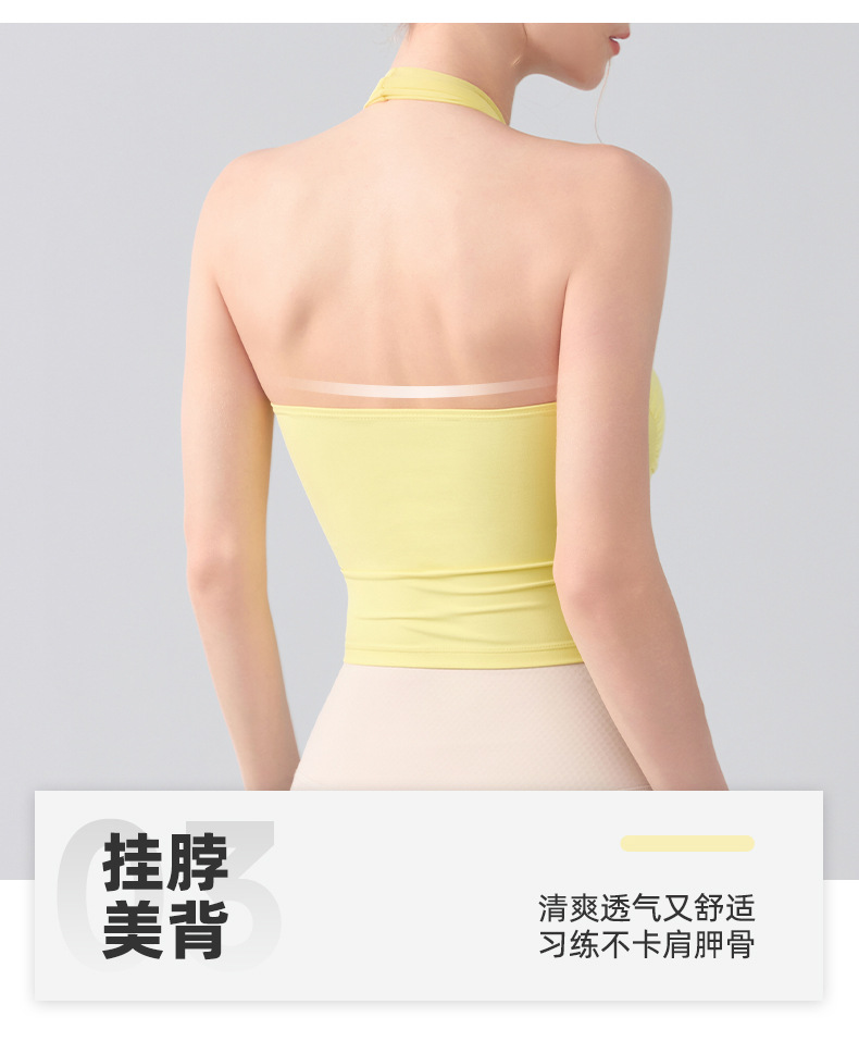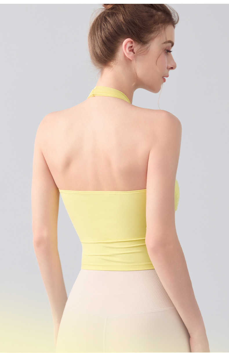 유럽과 미국의 요가상의, 여성스러운 홀터넥, 새로운 스타일의 등이 없는 타이트한 가슴 패드가 있는 요가복, 스포츠 피트니스 조끼스토어 가기