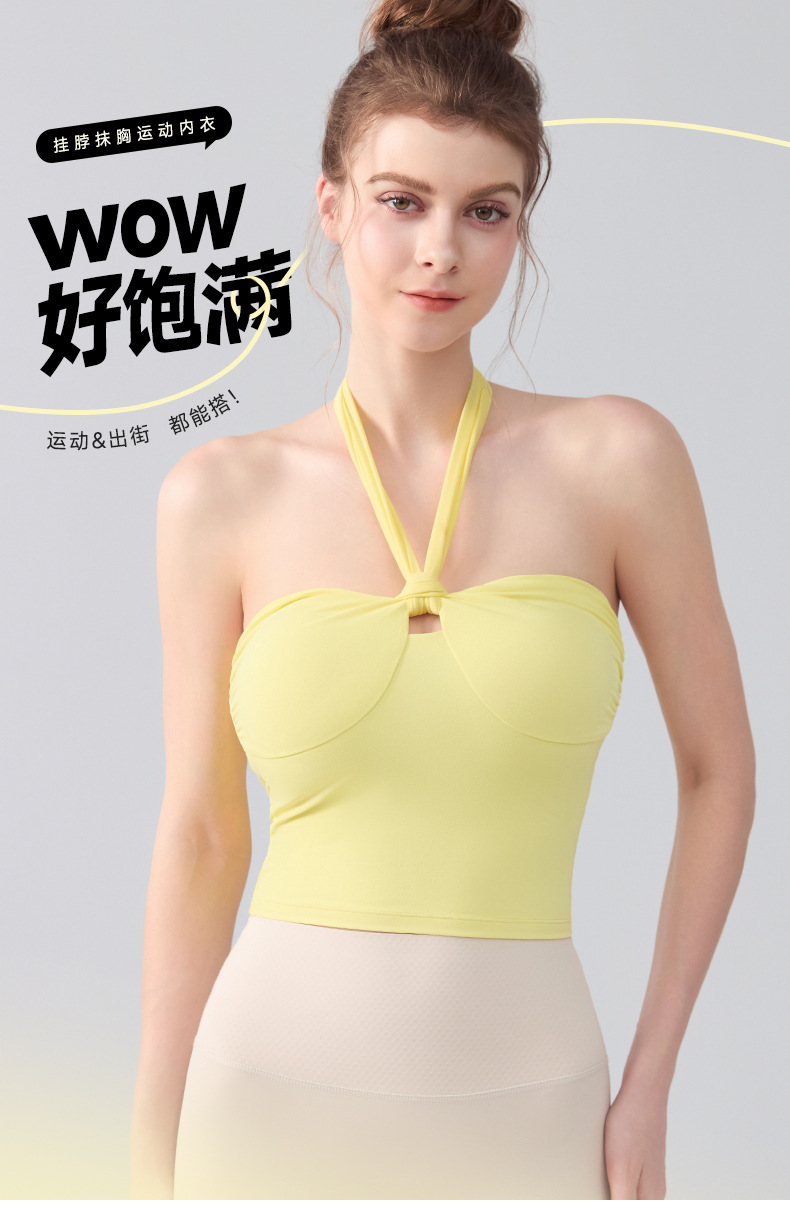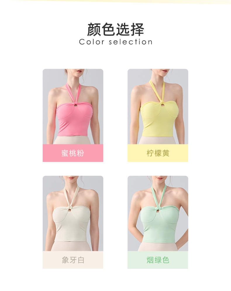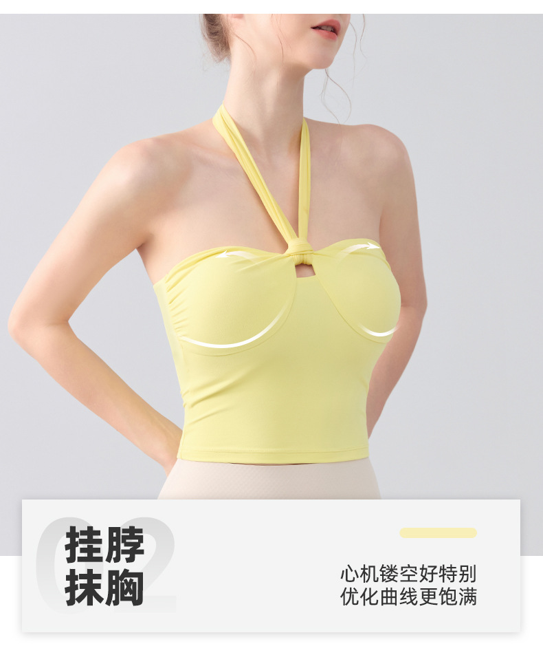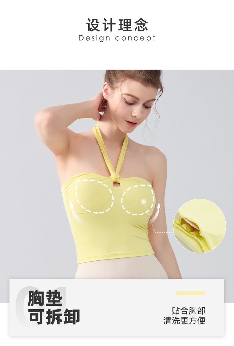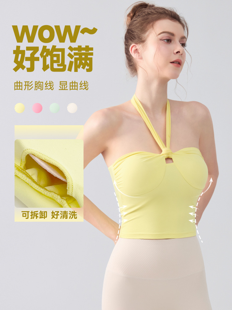 유럽과 미국의 요가상의, 여성스러운 홀터넥, 새로운 스타일의 등이 없는 타이트한 가슴 패드가 있는 요가복, 스포츠 피트니스 조끼스토어 가기