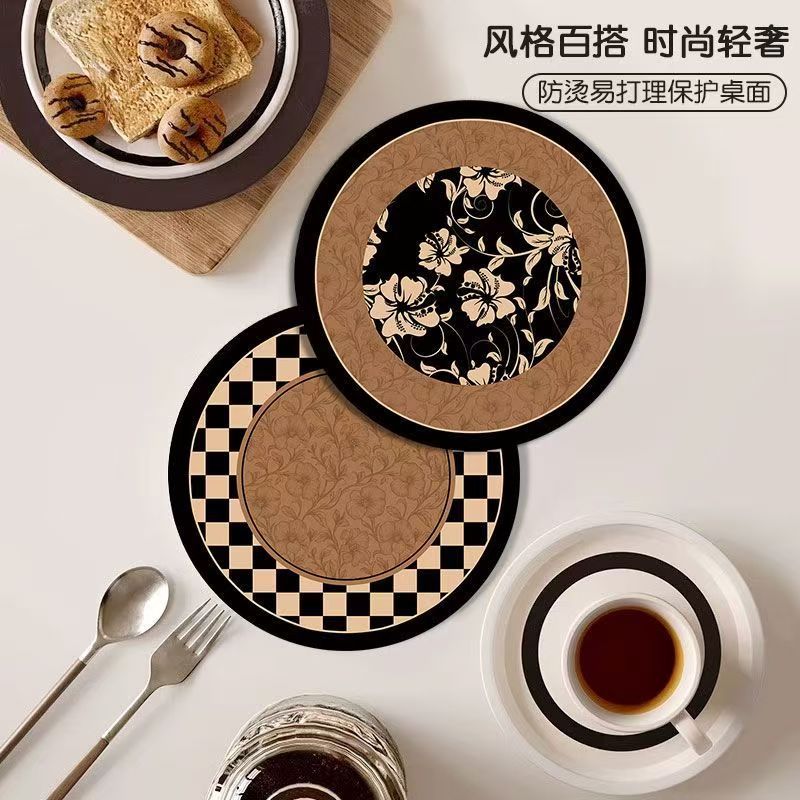 중세 스타일 컵 받침 유럽 복고풍 기능 간단한 단열 매트 식탁 매트 접시 트레이 매트 컵 받침 미끄럼 방지 및 화상 방지 인쇄스토어 가기