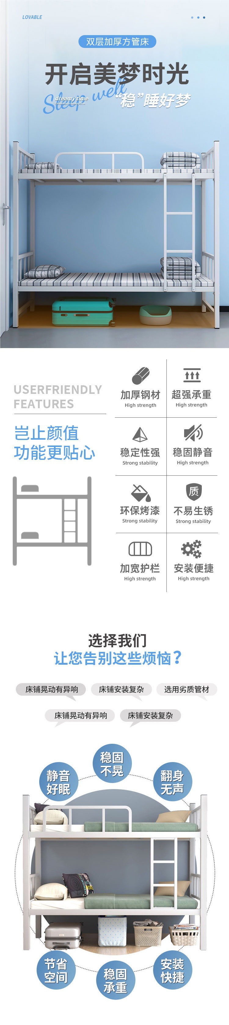 이층침대, 이층사각침대, 기숙사침대, 학생용 하이베드, 건설현장선반, 2층 철제 이층침대