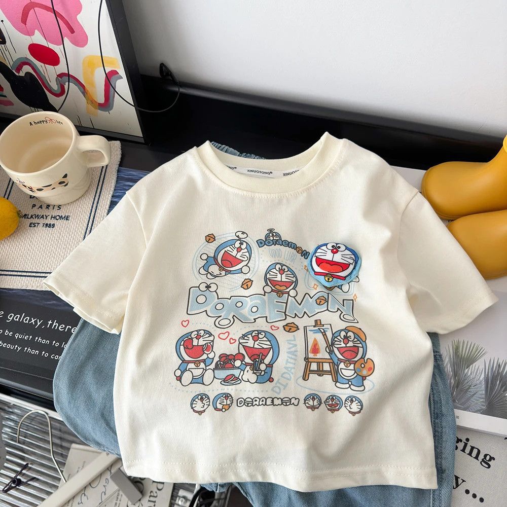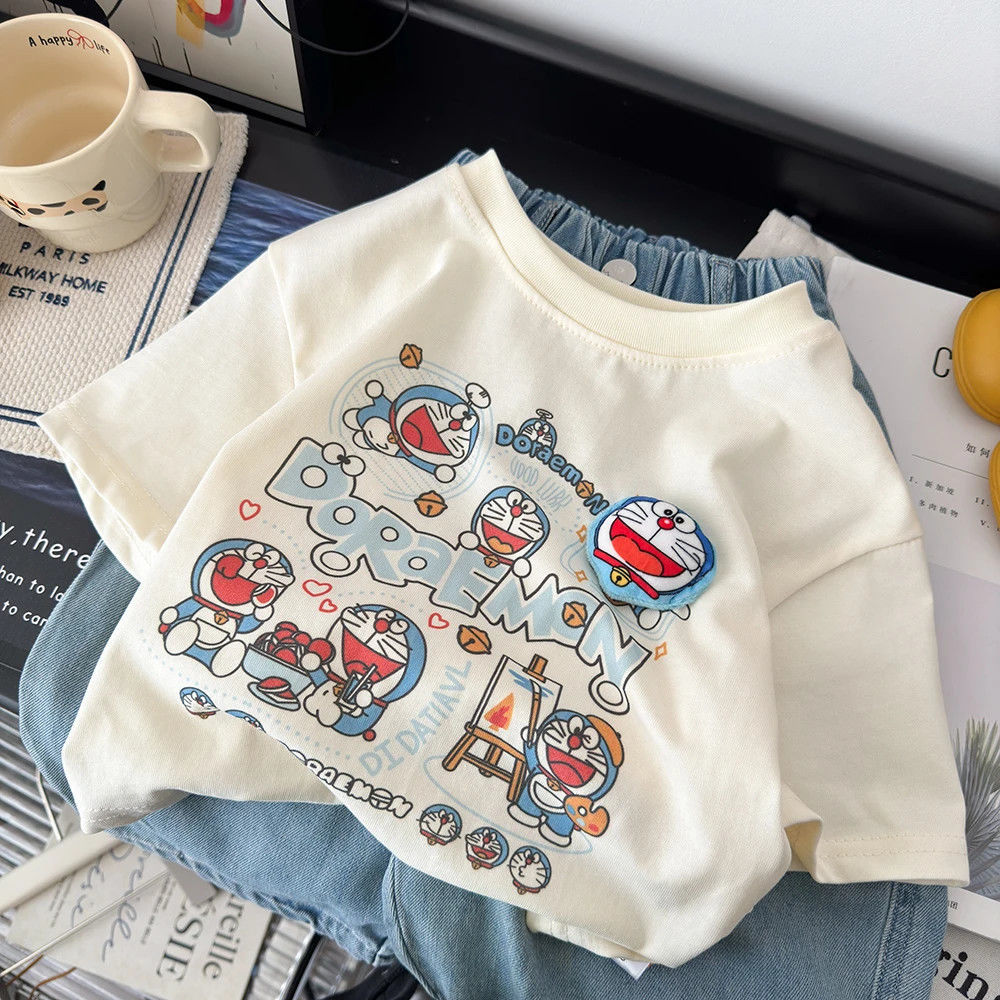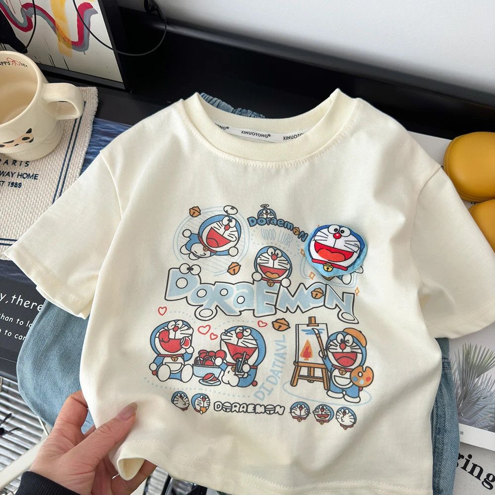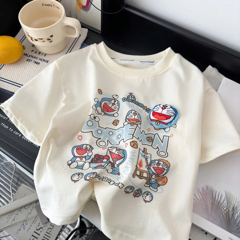 [부모-자식 의류] 순면 아동 패션 프린트 입체 인형 다용도 캐주얼 반팔 만화 티셔츠 탑