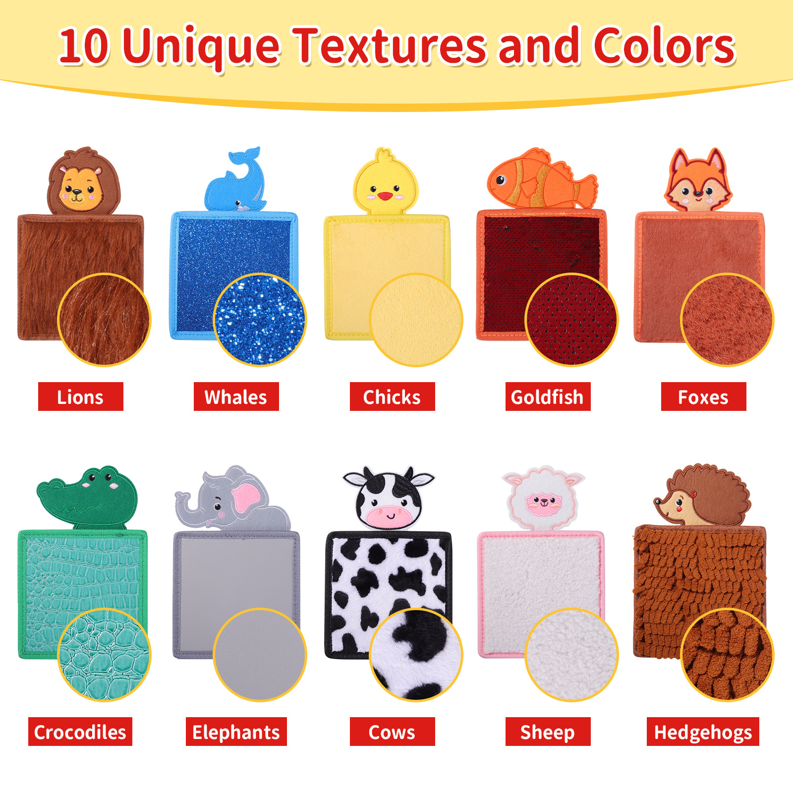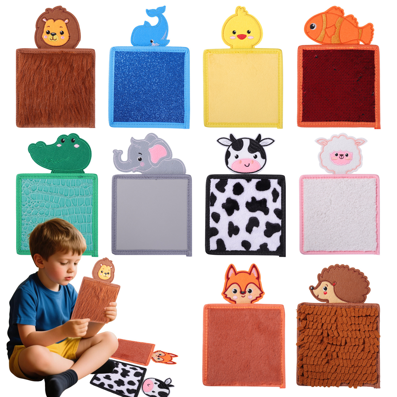 Sike 감각 훈련 동물 세트 10 색 인식 장난감 조기 교육 교육 감정 진정 질감 헤어 터치