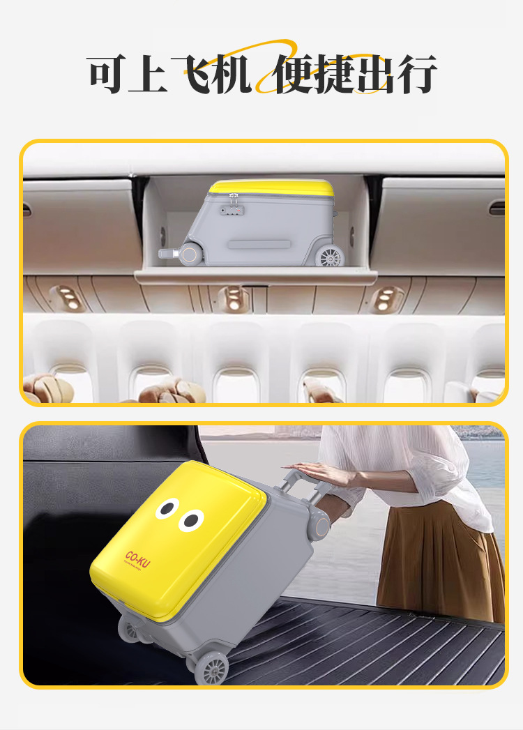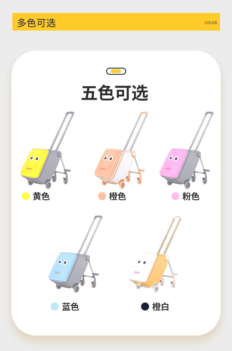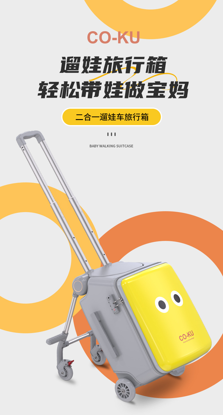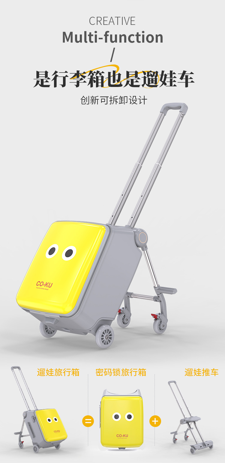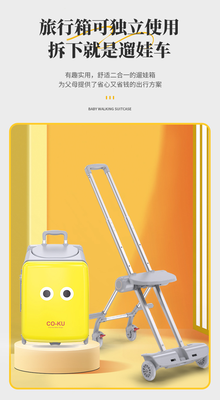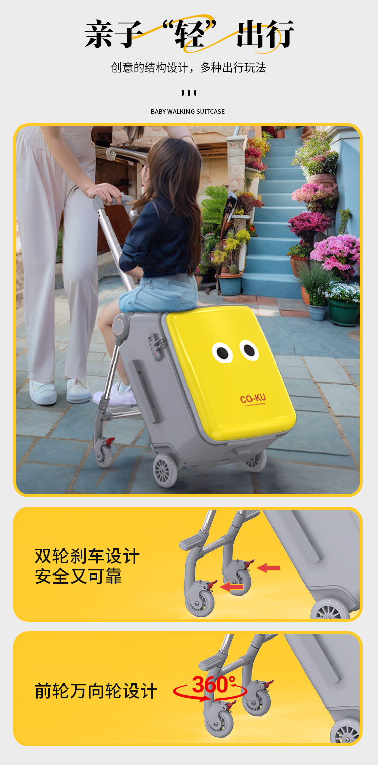 Coku 어린이용 앉을 수 있는 가방 더블 폴 트롤리 박스 사이클링 박스 유모차 여행 가방 투인원스토어 가기