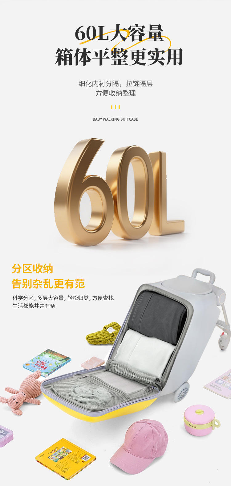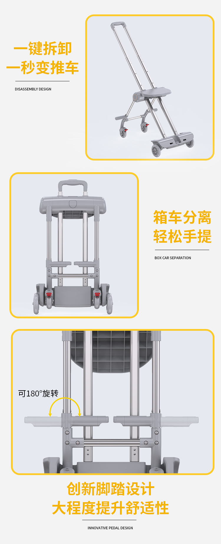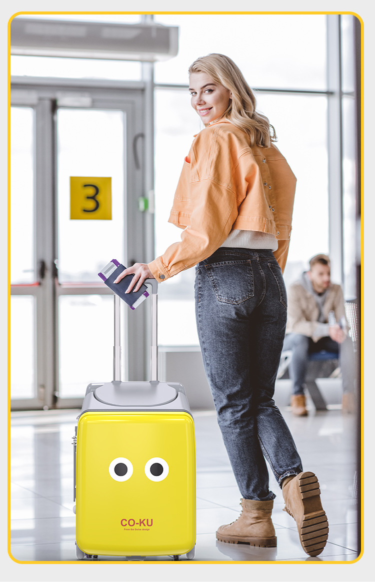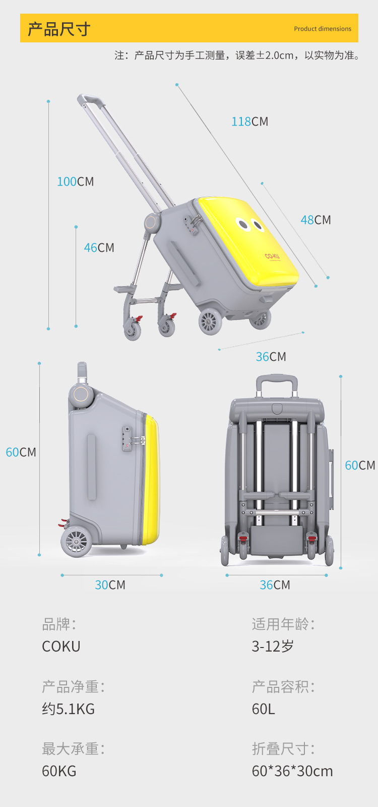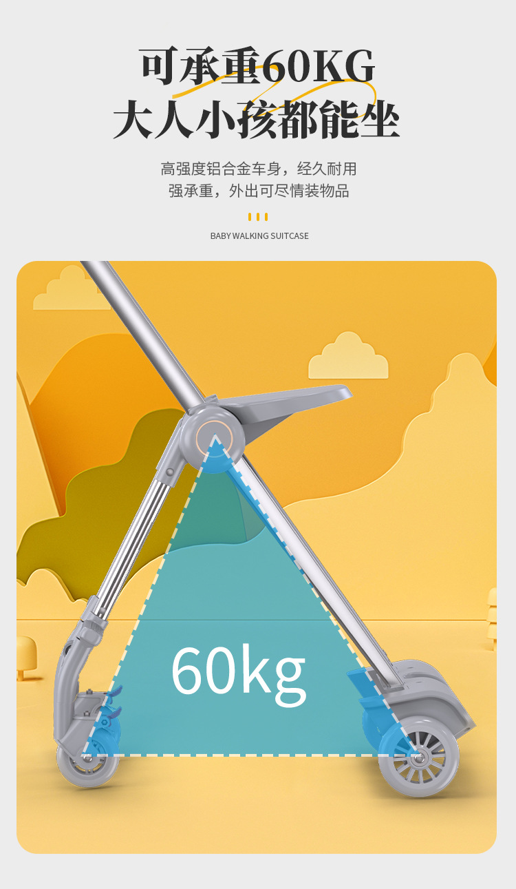 Coku 어린이용 앉을 수 있는 가방 더블 폴 트롤리 박스 사이클링 박스 유모차 여행 가방 투인원스토어 가기
