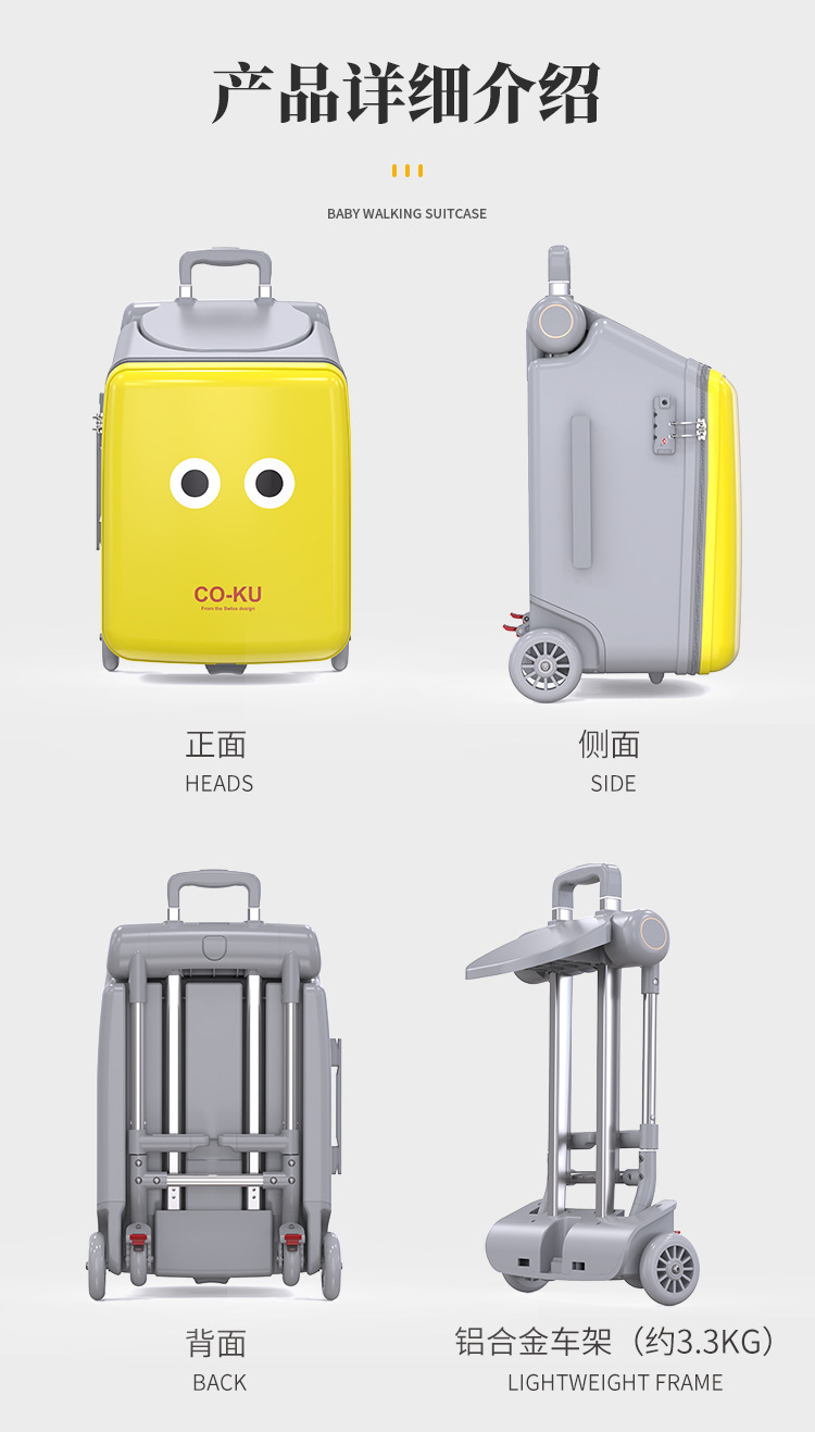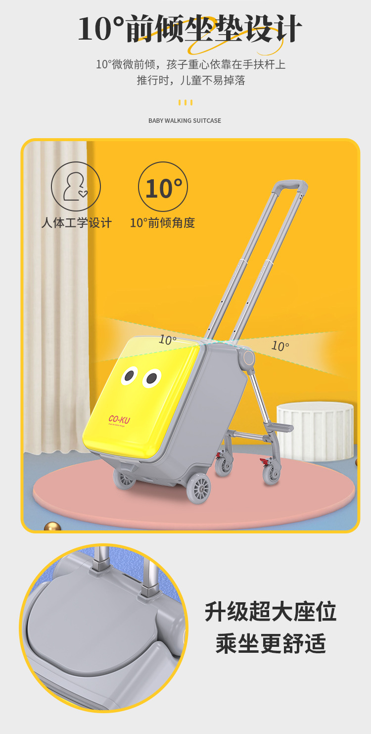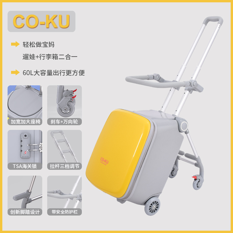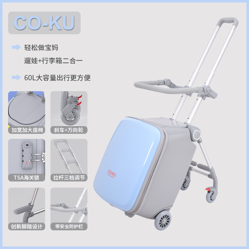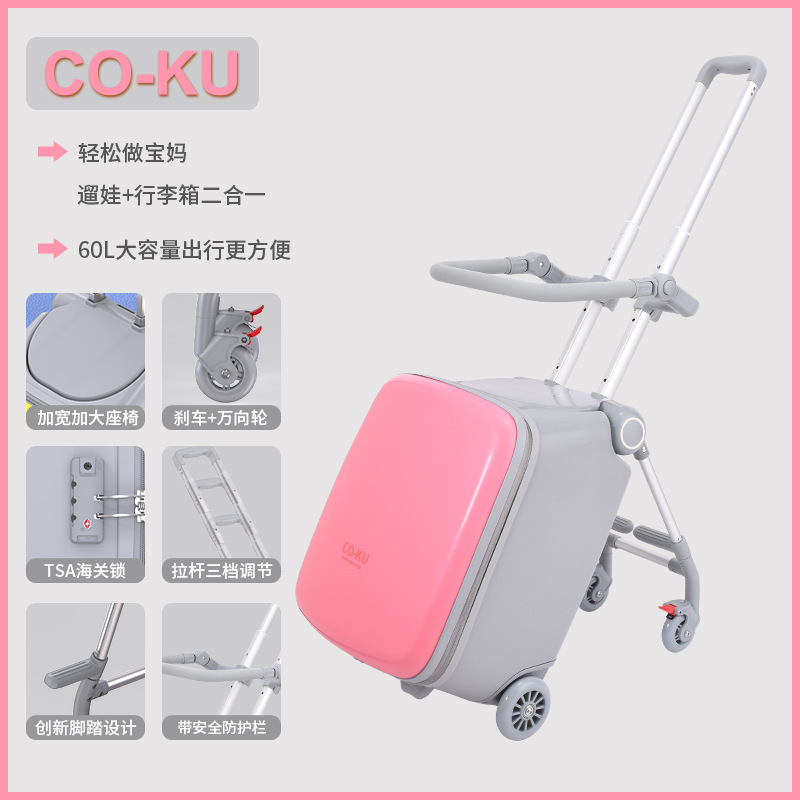 Coku 어린이용 앉을 수 있는 가방 더블 폴 트롤리 박스 사이클링 박스 유모차 여행 가방 투인원