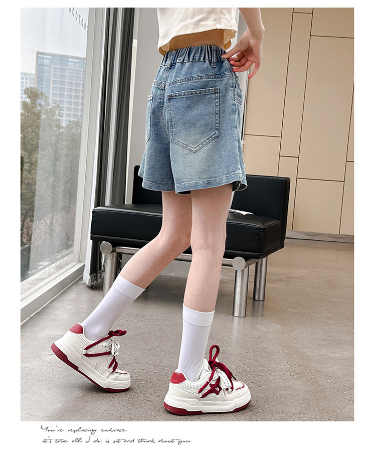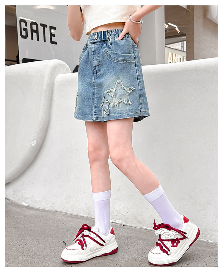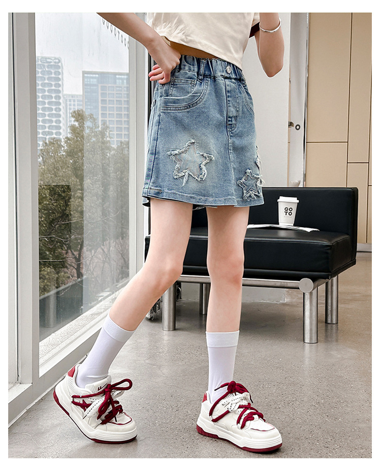 여아용 오각별 스커트 팬츠, 여름 신상품, 중대형 아동용 여아 패션 반바지, 2026년 유행 아동용 바지, 밑단이 헝겊인 스커트 팬츠스토어 가기