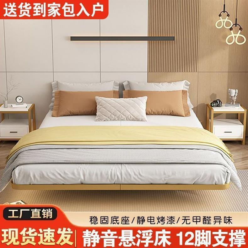 침대 옆이 없는 공중부양 철제 침대, 가정용 침실 다다미 랙 프레임, 두꺼운 탄소강 프레임, 소형 아파트 무소음 침대스토어 가기
