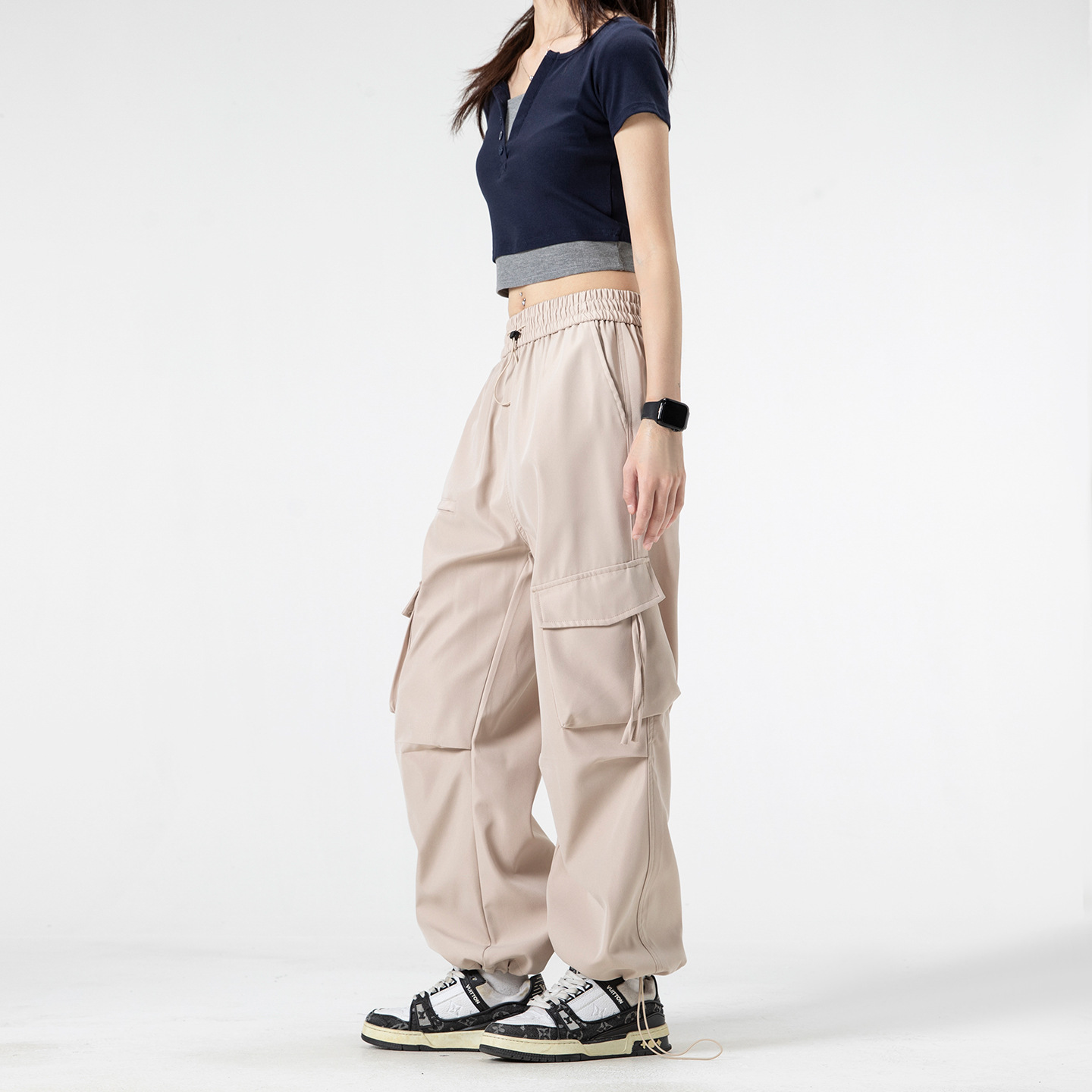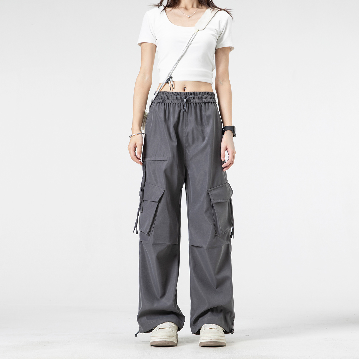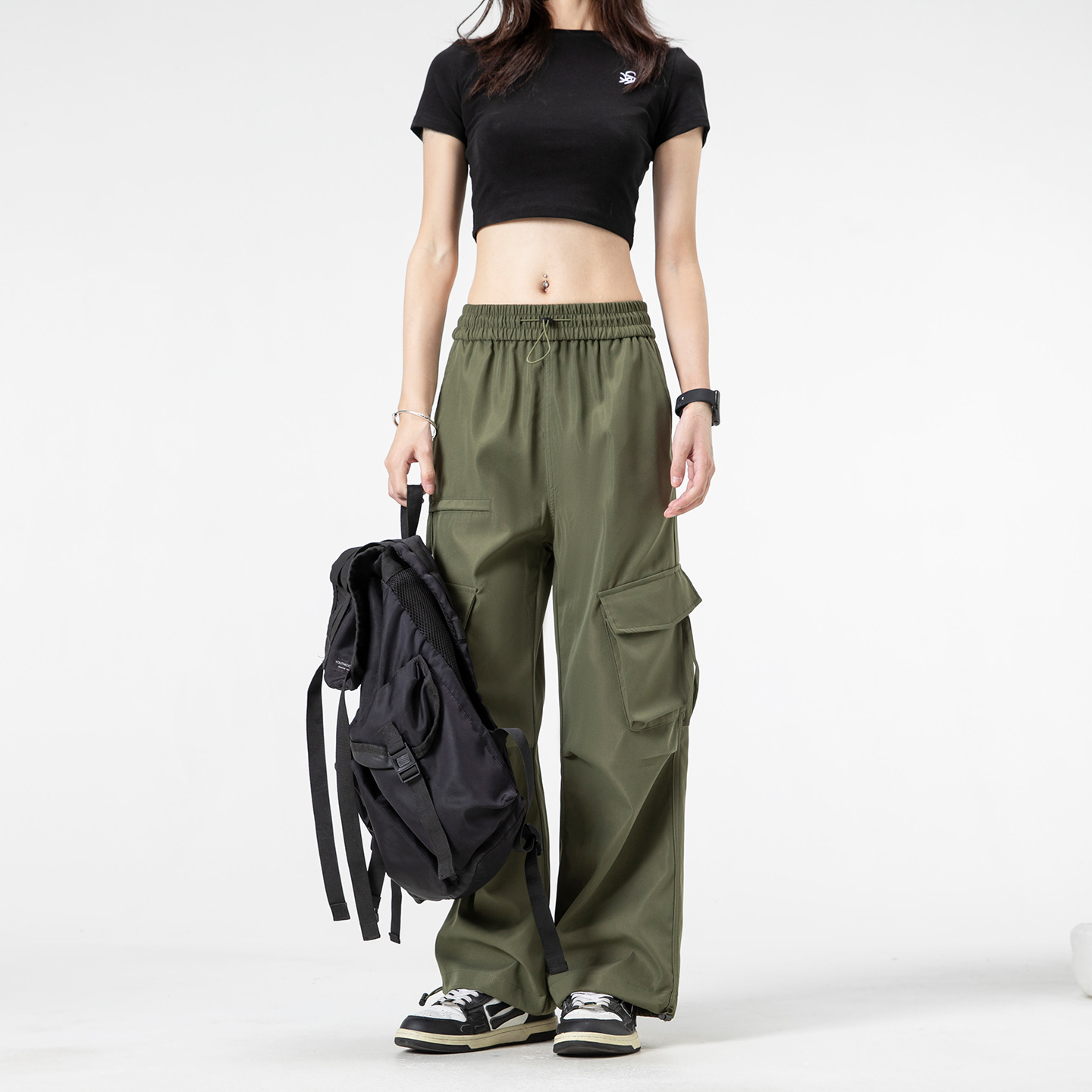 국경 간 도매 국경 간 봄 여름 새로운 미국 작업복 느슨한 스트레이트 캐주얼 스포츠 바지 검정색스토어 가기