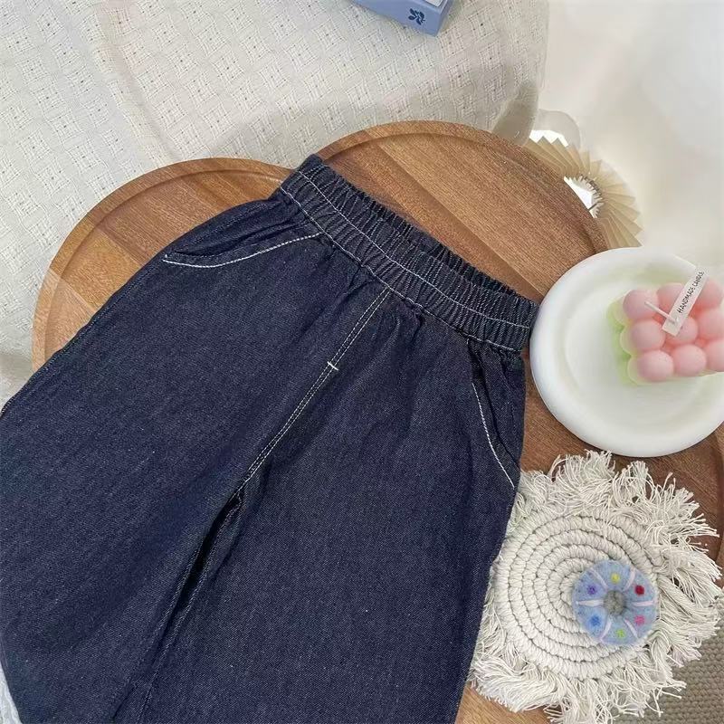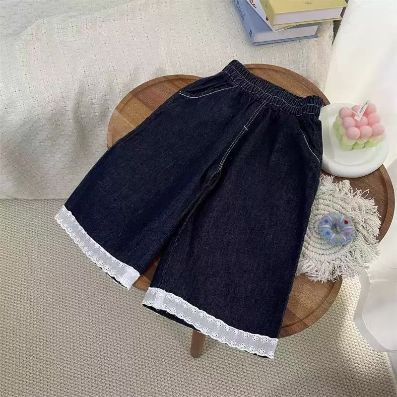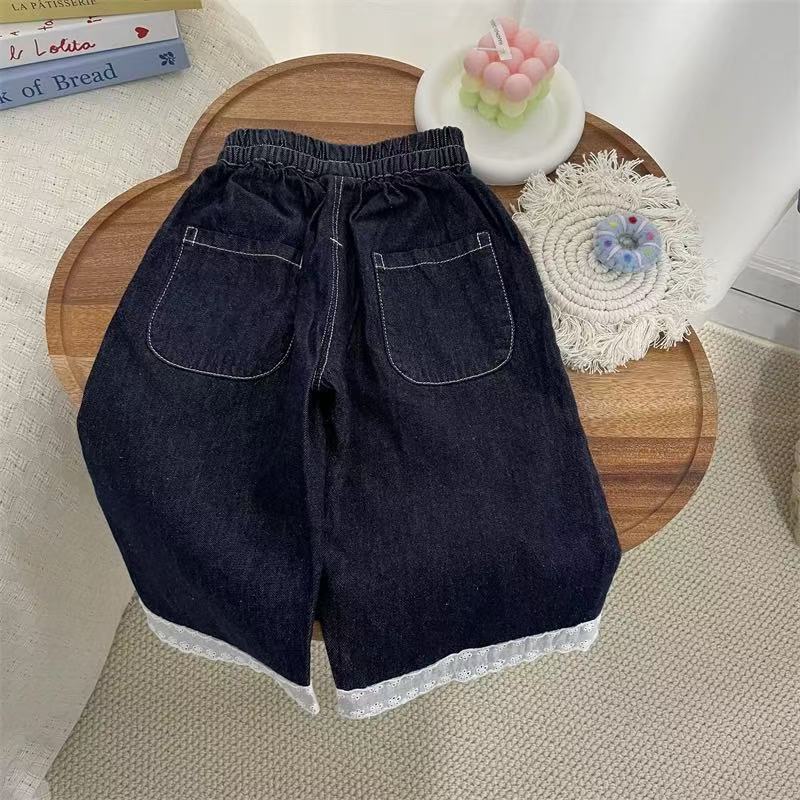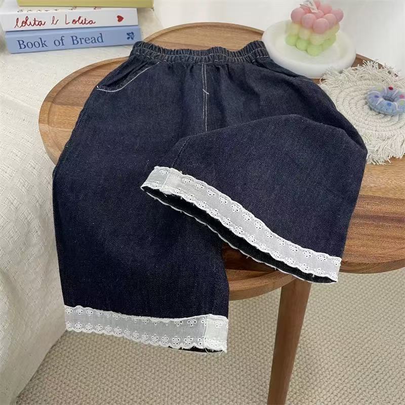 여름 새 스타일 2025 아기 소녀 레이스 넓은 다리 부드러운 데님 스트레이트 바지 봄 얇은 소녀 청바지 어린이스토어 가기