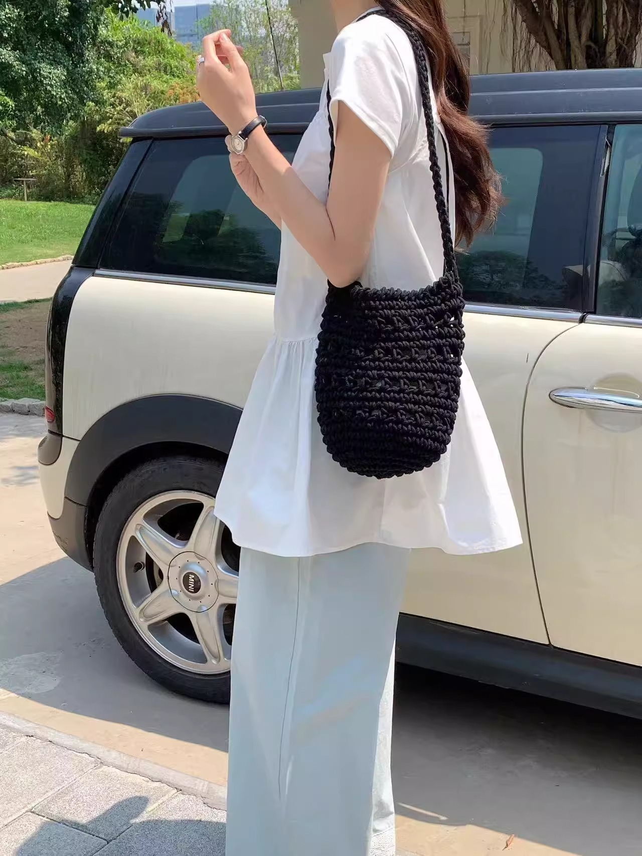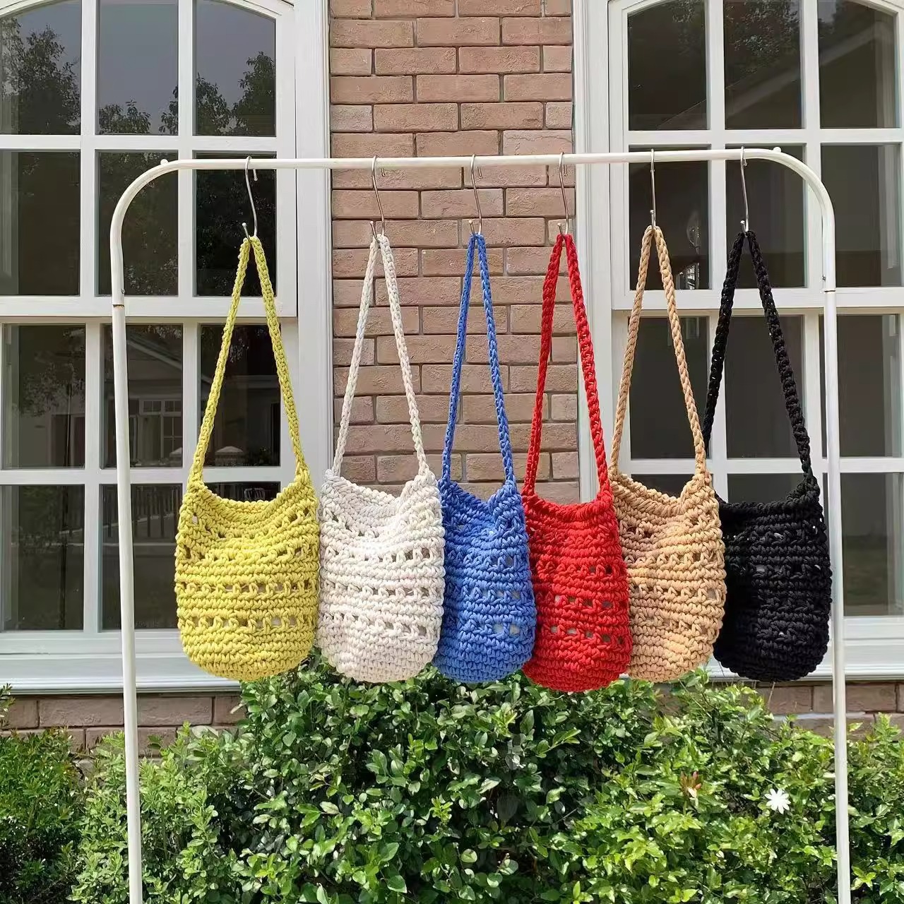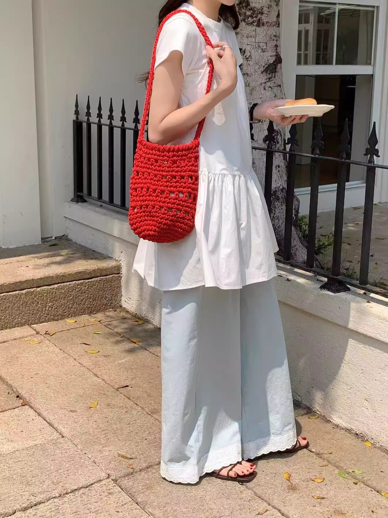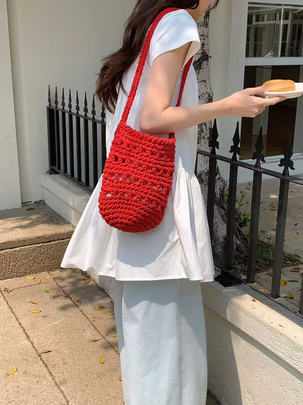 한국 대용량 빨간색 중공 니트 가방 여성 봄 여름 짠 가방 매일 통근 숄더백 토트 백
