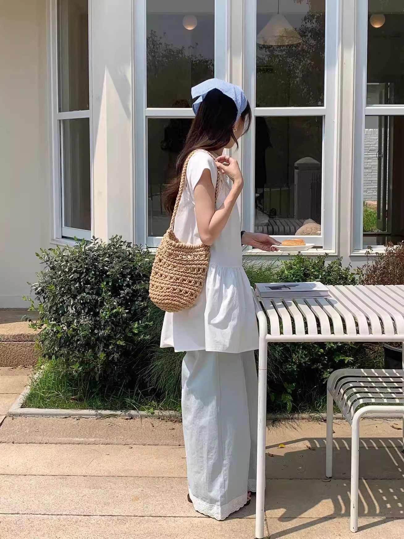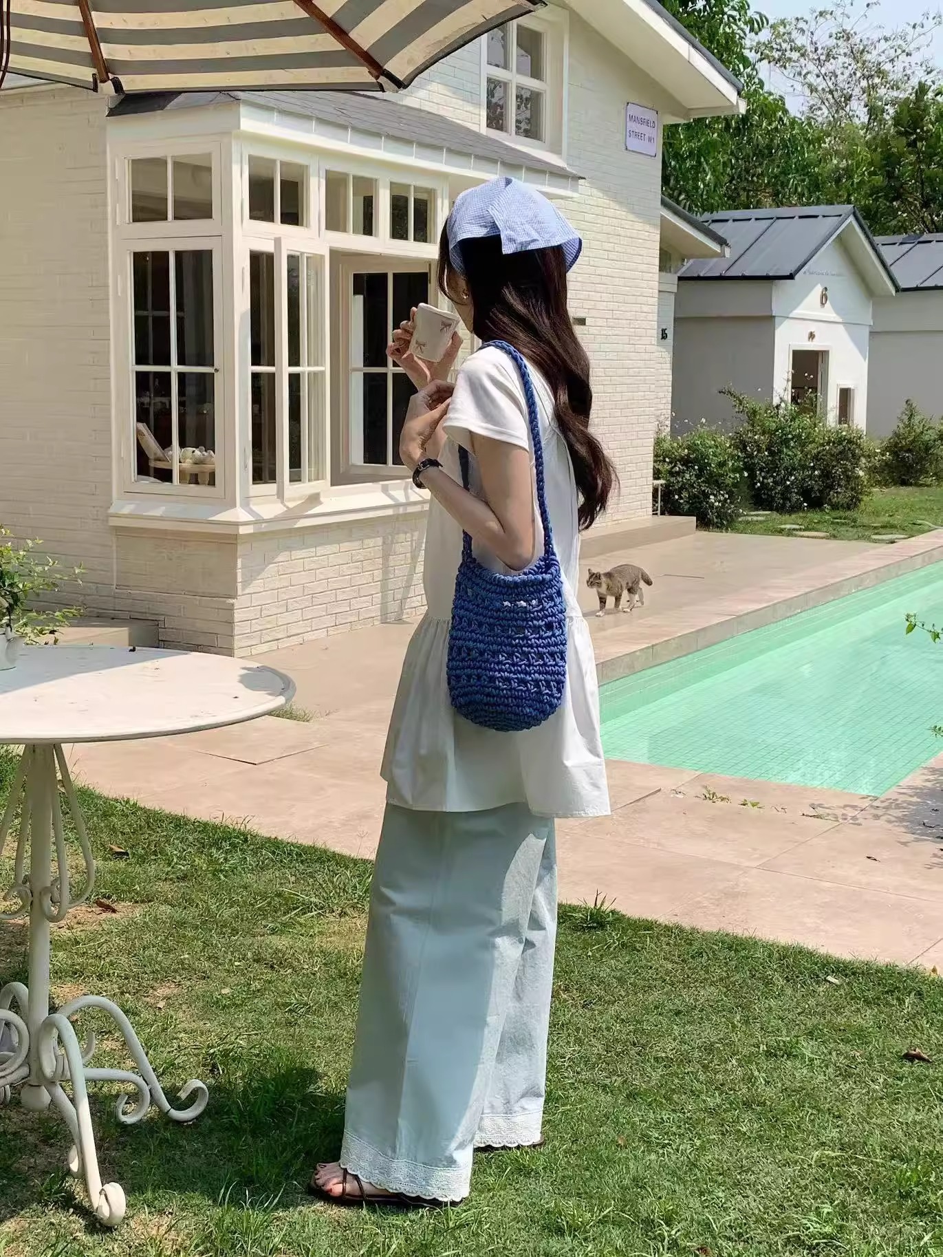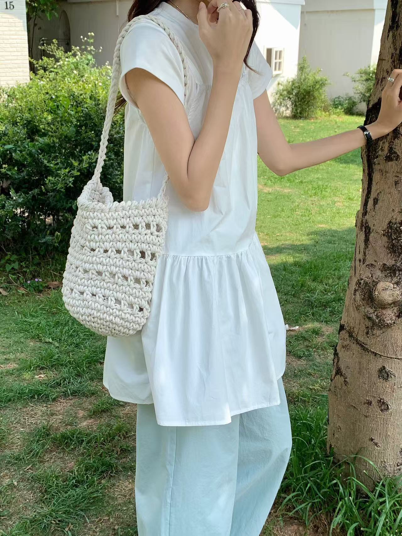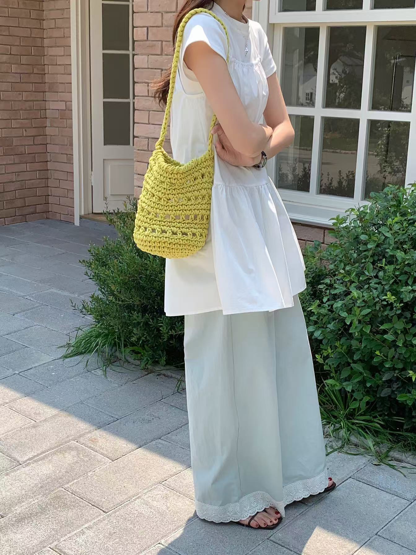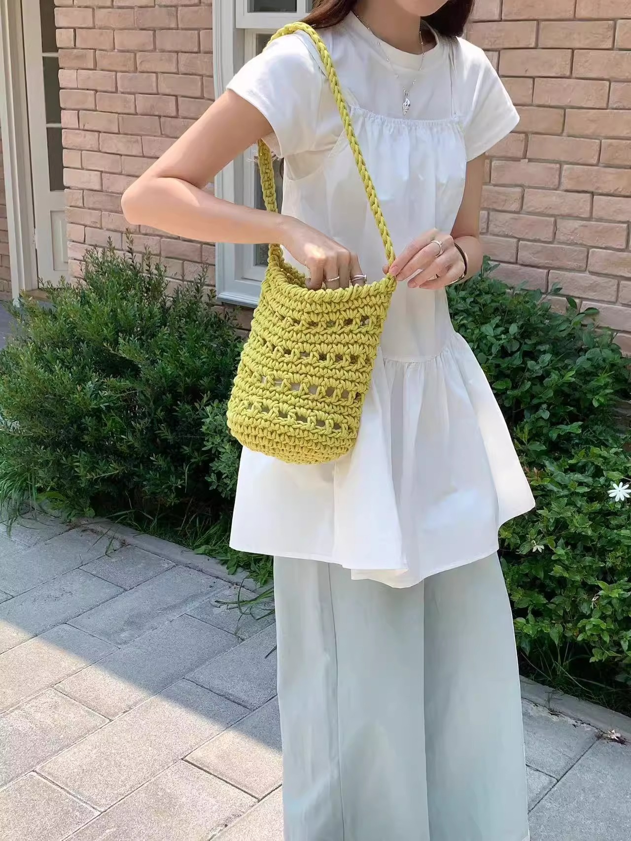 한국 대용량 빨간색 중공 니트 가방 여성 봄 여름 짠 가방 매일 통근 숄더백 토트 백