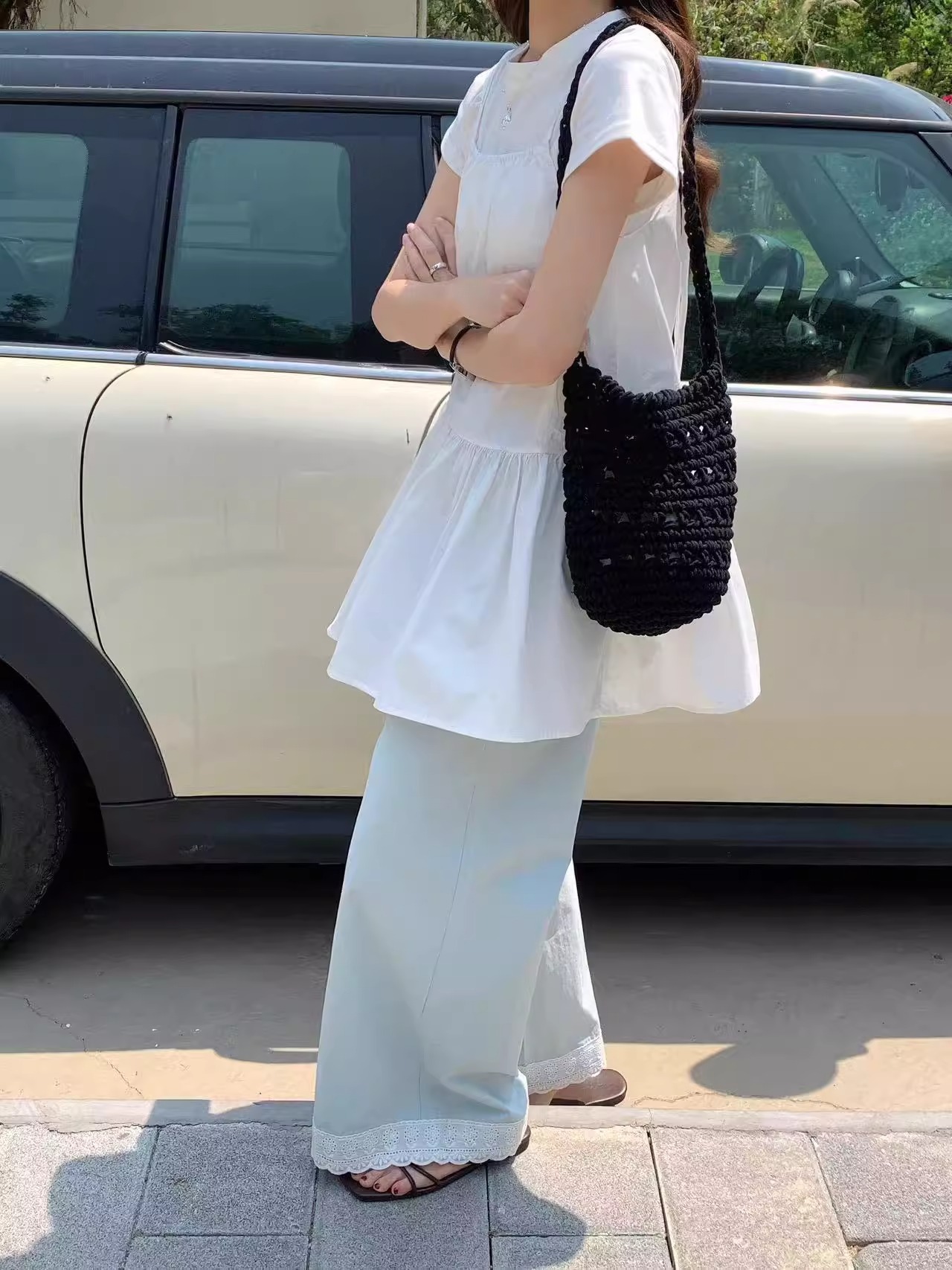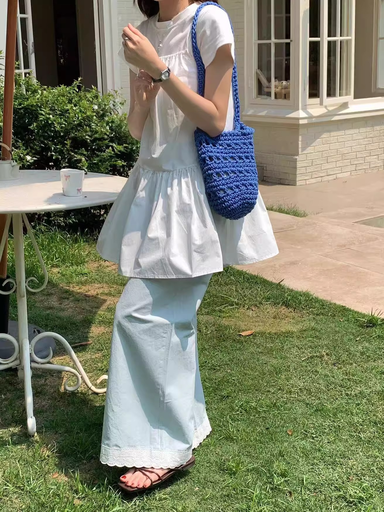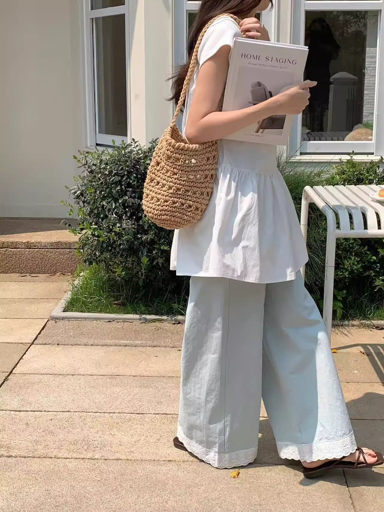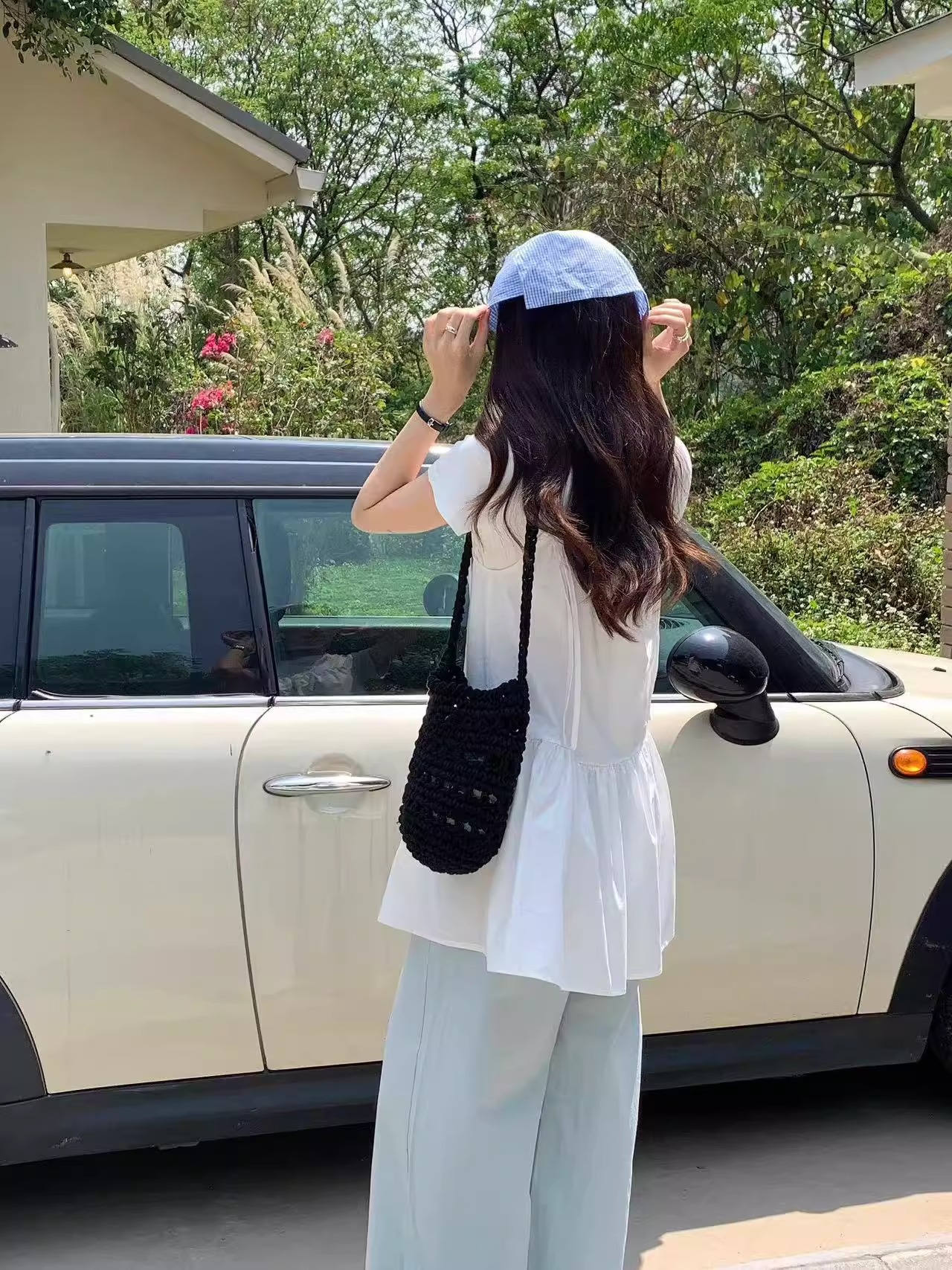 한국 대용량 빨간색 중공 니트 가방 여성 봄 여름 짠 가방 매일 통근 숄더백 토트 백