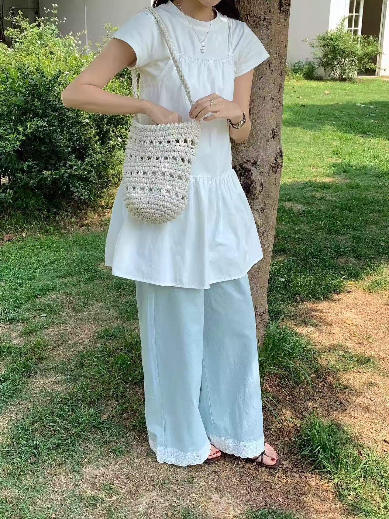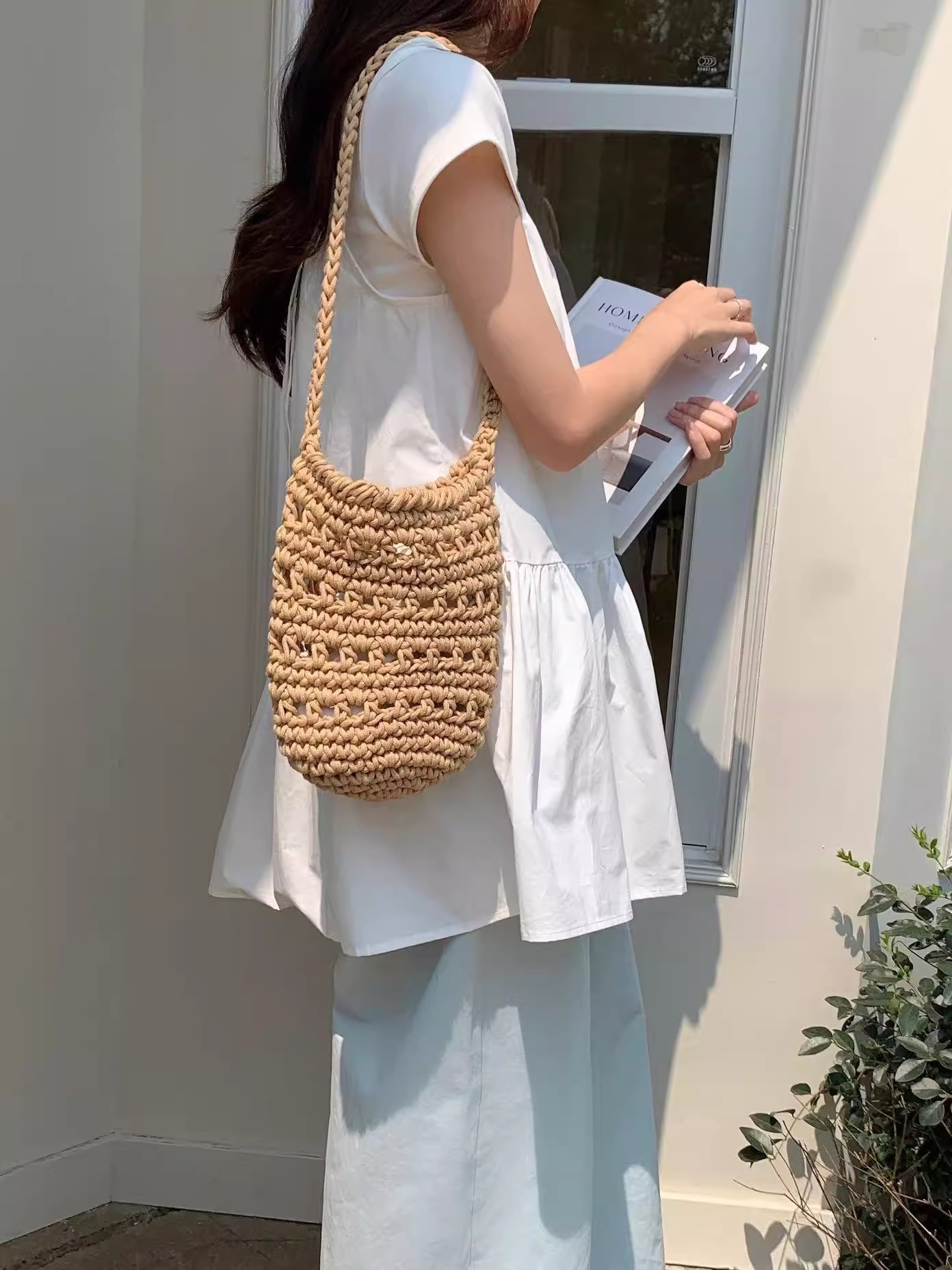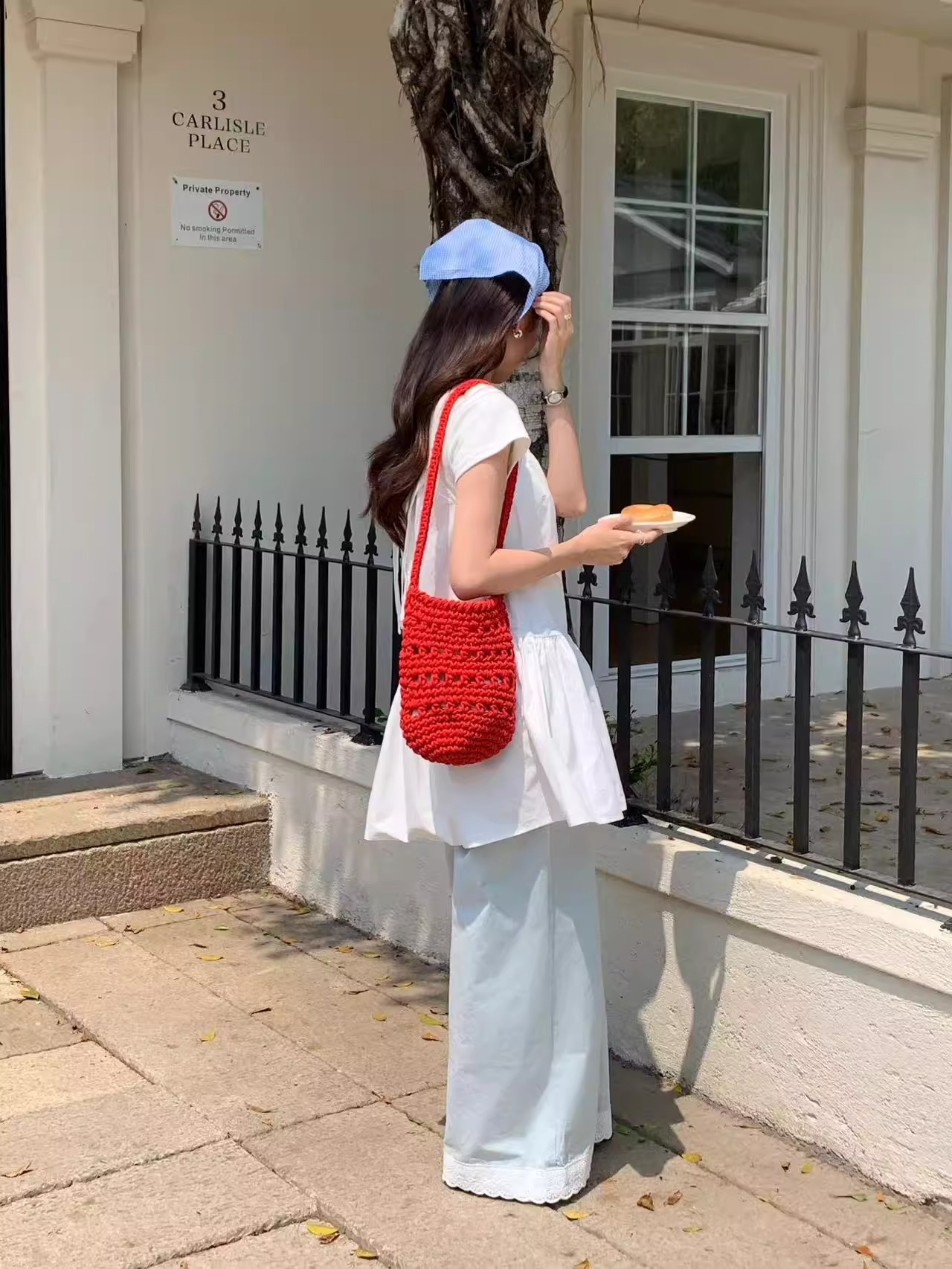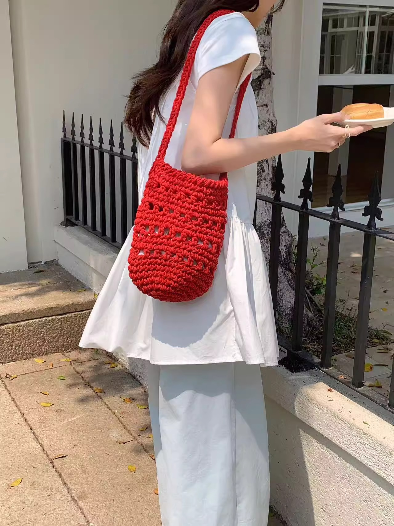 한국 대용량 빨간색 중공 니트 가방 여성 봄 여름 짠 가방 매일 통근 숄더백 토트 백스토어 가기