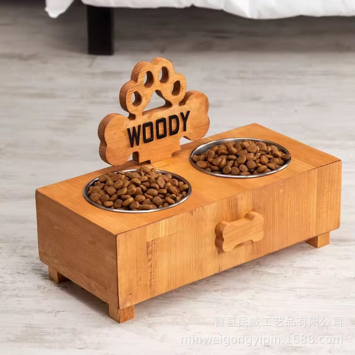새로운 나무 더블 그릇 개 그릇 랙 나무 애완 동물 개 그릇 랙 홈 플로어 스탠딩 단단한 나무 강아지 피더스토어 가기