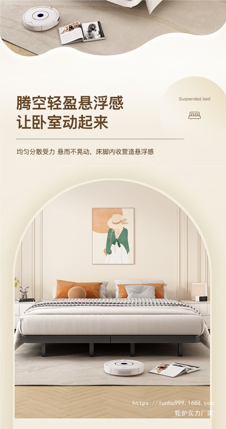 일본식 심플한 침대 없는 공중부양 침대 선반, 가정용 철제 침대, 두꺼운 싱글 및 더블 철제 선반 침대스토어 가기