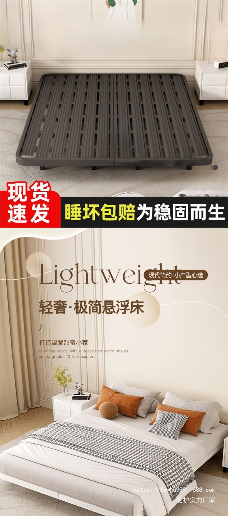 일본식 심플한 침대 없는 공중부양 침대 선반, 가정용 철제 침대, 두꺼운 싱글 및 더블 철제 선반 침대