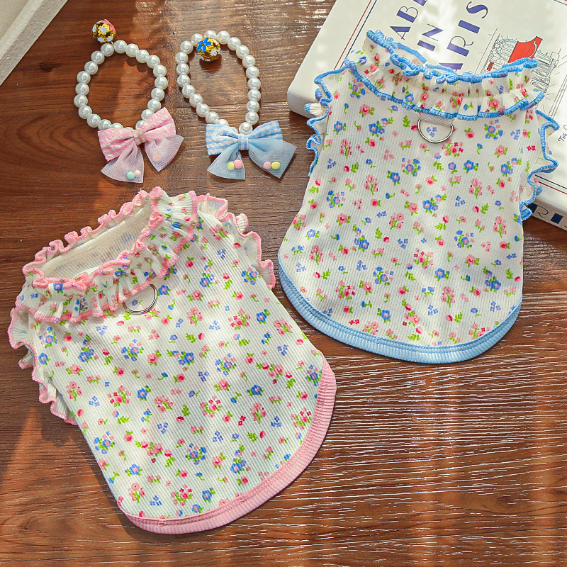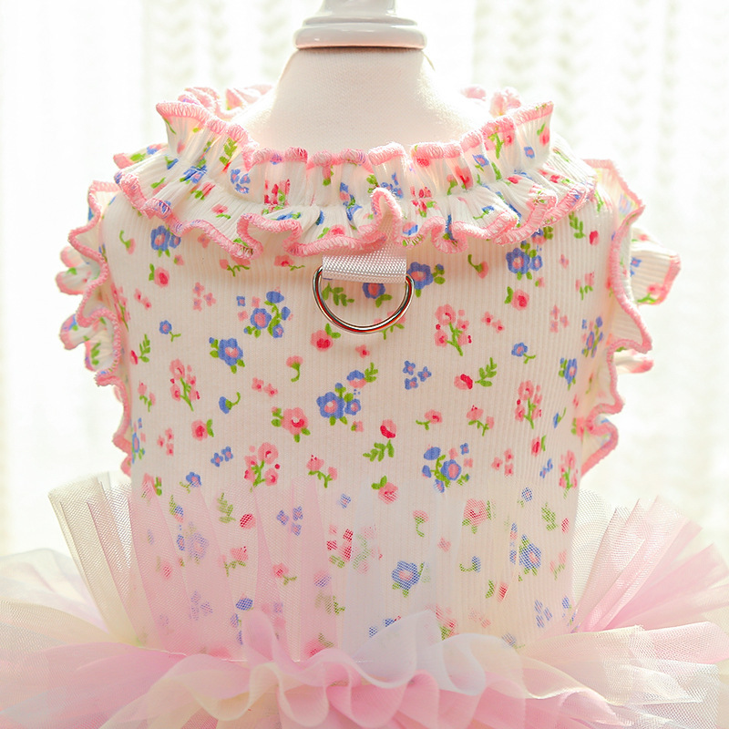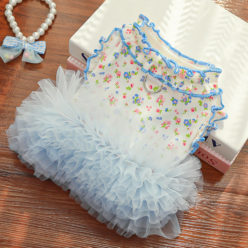 여름 새 고양이와 개 스커트 꽃 메쉬 애완 동물 드레스 테디 비숑 애완 동물 옷스토어 가기