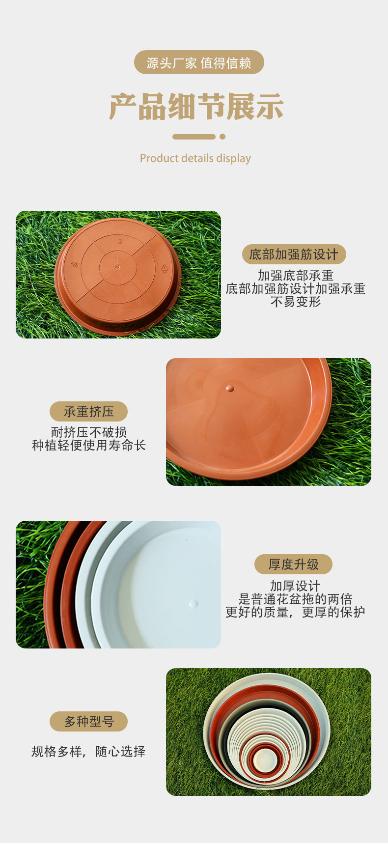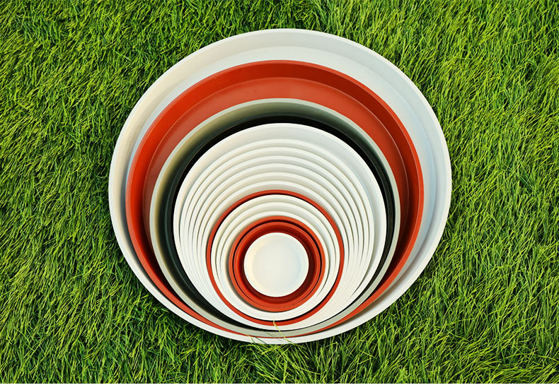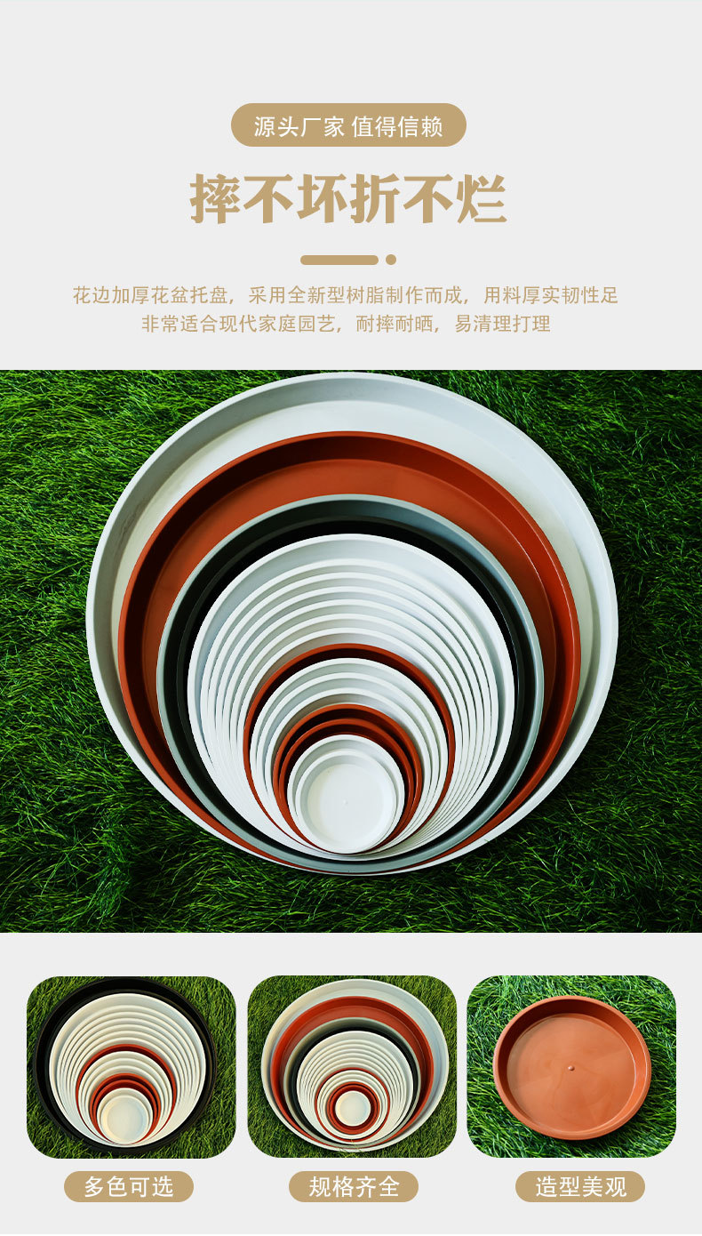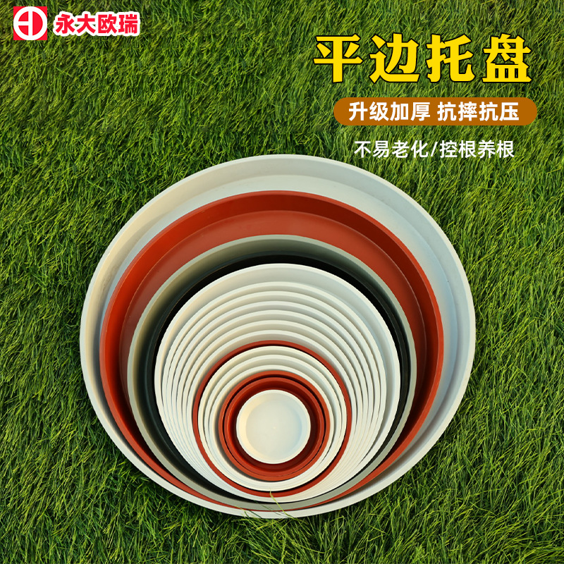 도매 화분 평평한 가장자리와 받침대가 있는 원형 플라스틱 받침대 물받이