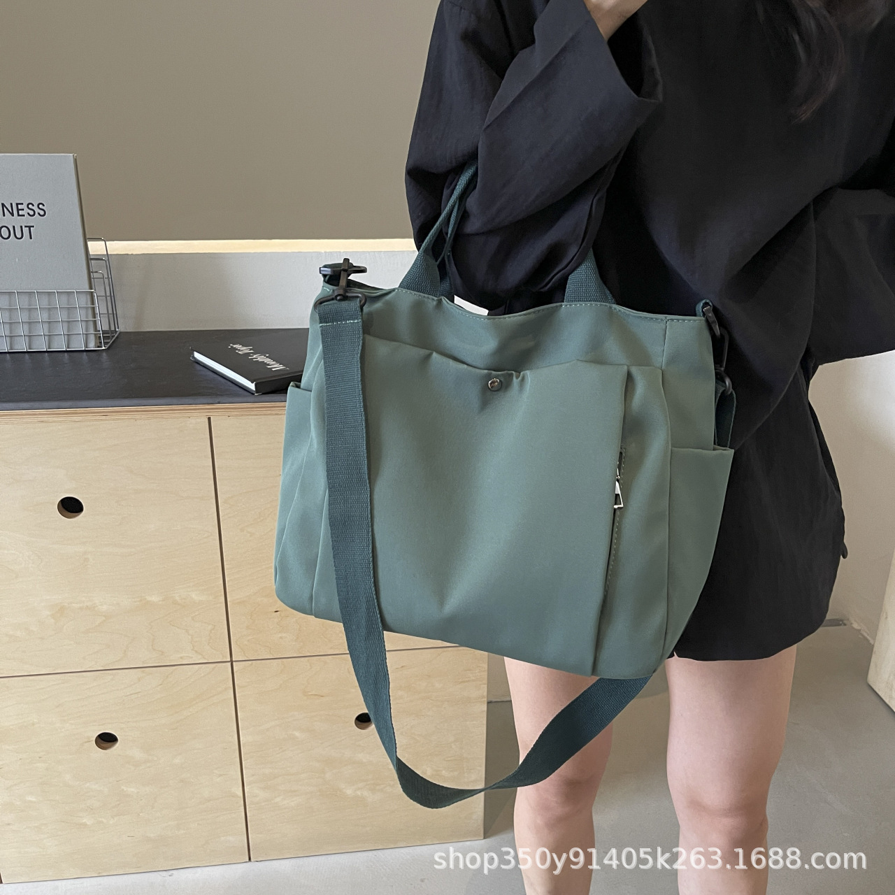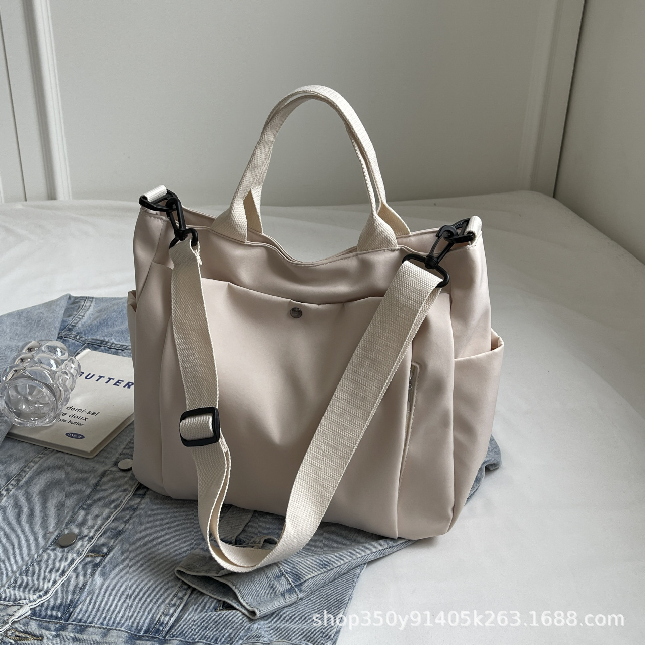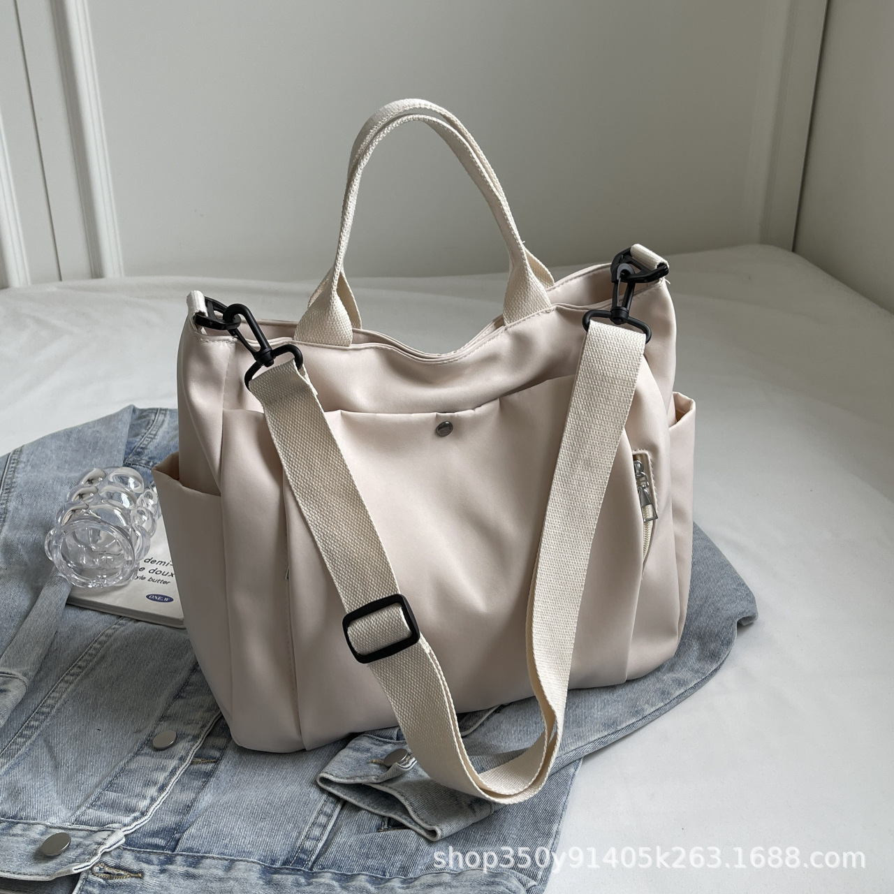 한국식 캔버스 대용량 패셔너블하고 활용도가 높은 숄더 토트백, 업무용 통근가방, 심플한 캐주얼 크로스백, 휴대용스토어 가기