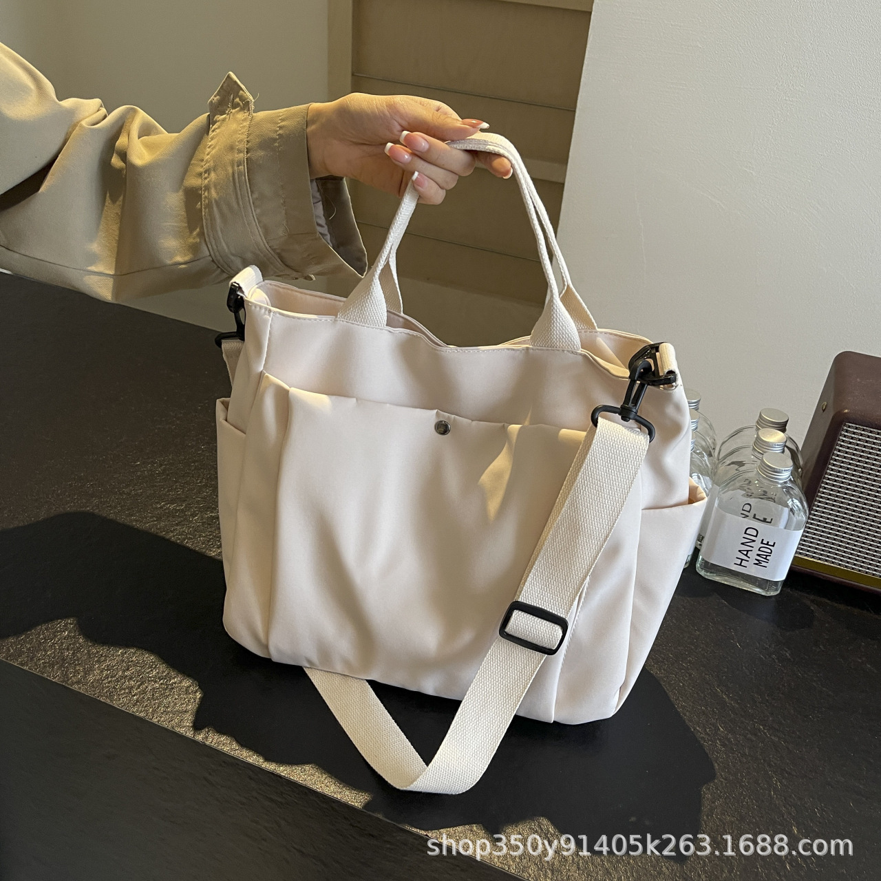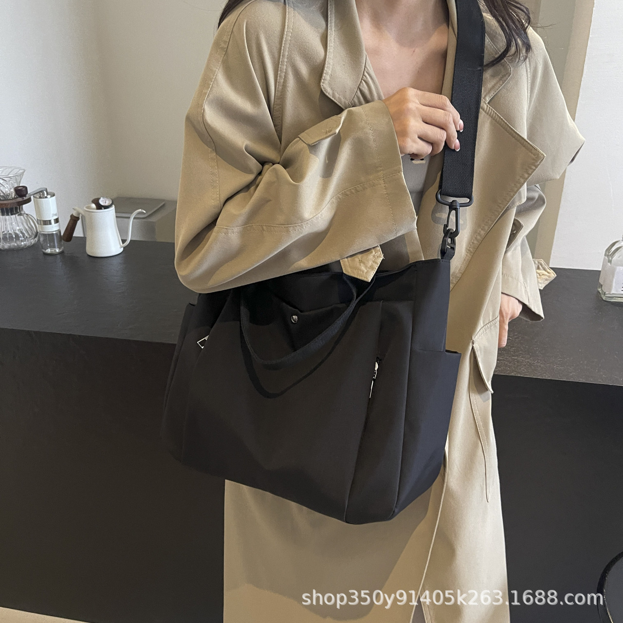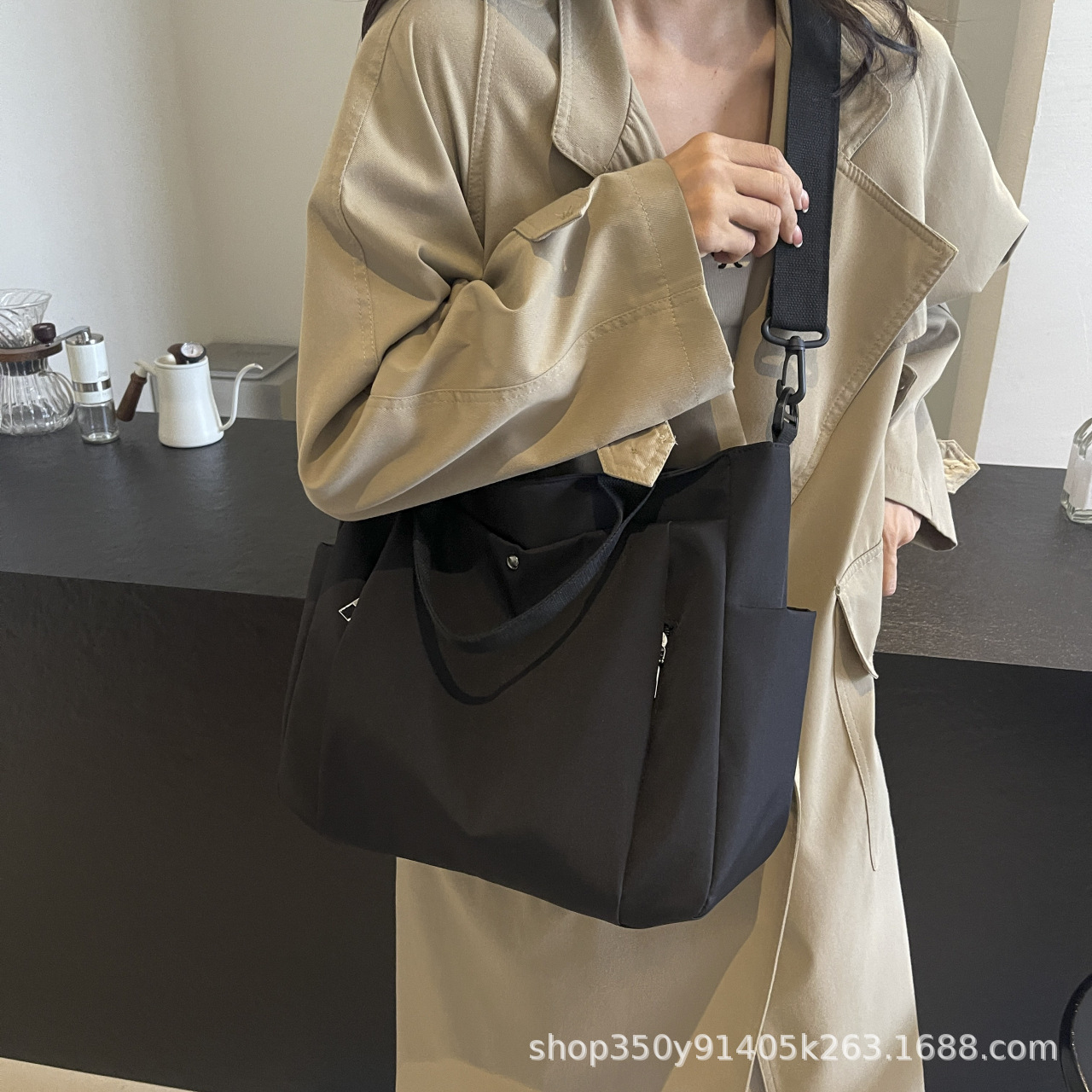 한국식 캔버스 대용량 패셔너블하고 활용도가 높은 숄더 토트백, 업무용 통근가방, 심플한 캐주얼 크로스백, 휴대용스토어 가기