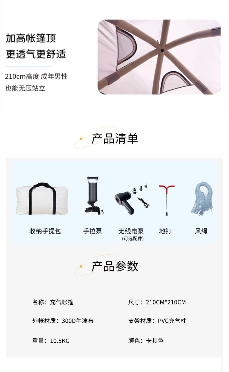 • 카키(라운드 스타일) + 무선 펌프 + 에어베드
