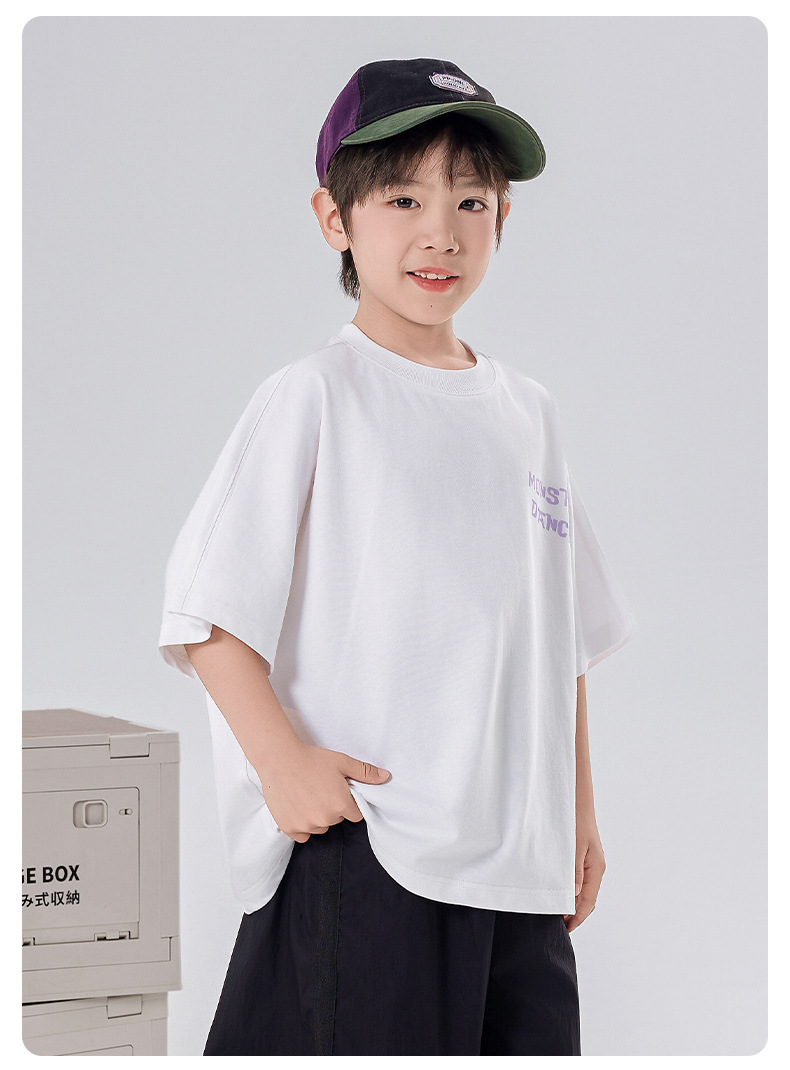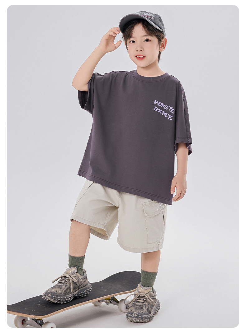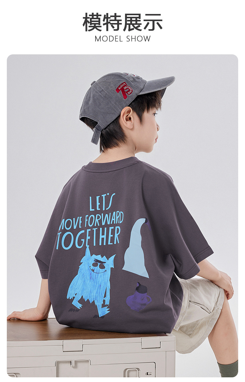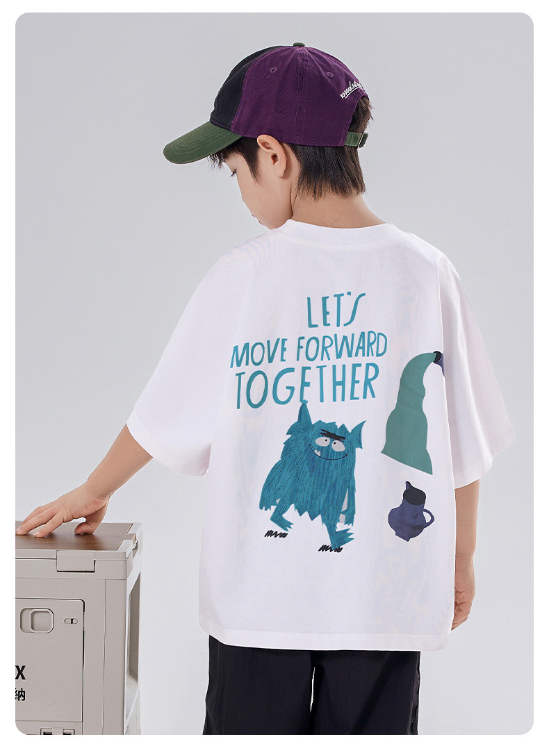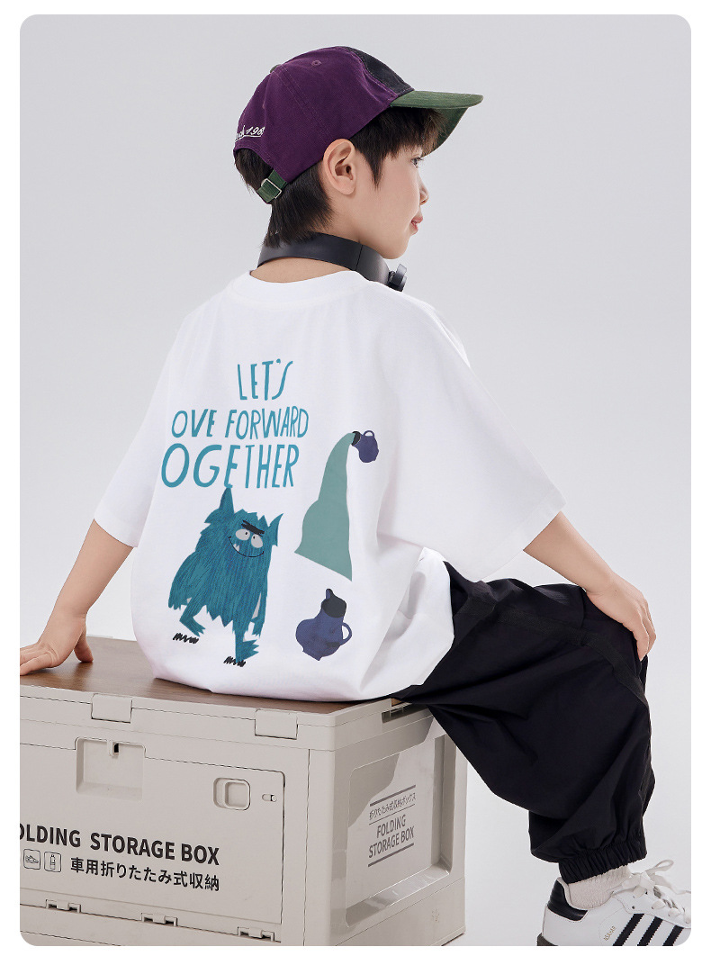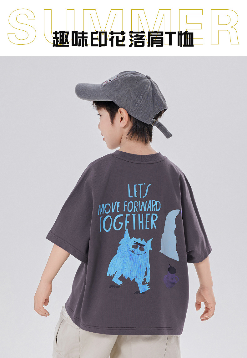 소년 티셔츠 반팔 여름 옷 2025 새로운 스타일 중대형 어린이 만화 프린트 오프 숄더 루즈 아동용 라운드 넥 반팔 트렌디 T스토어 가기