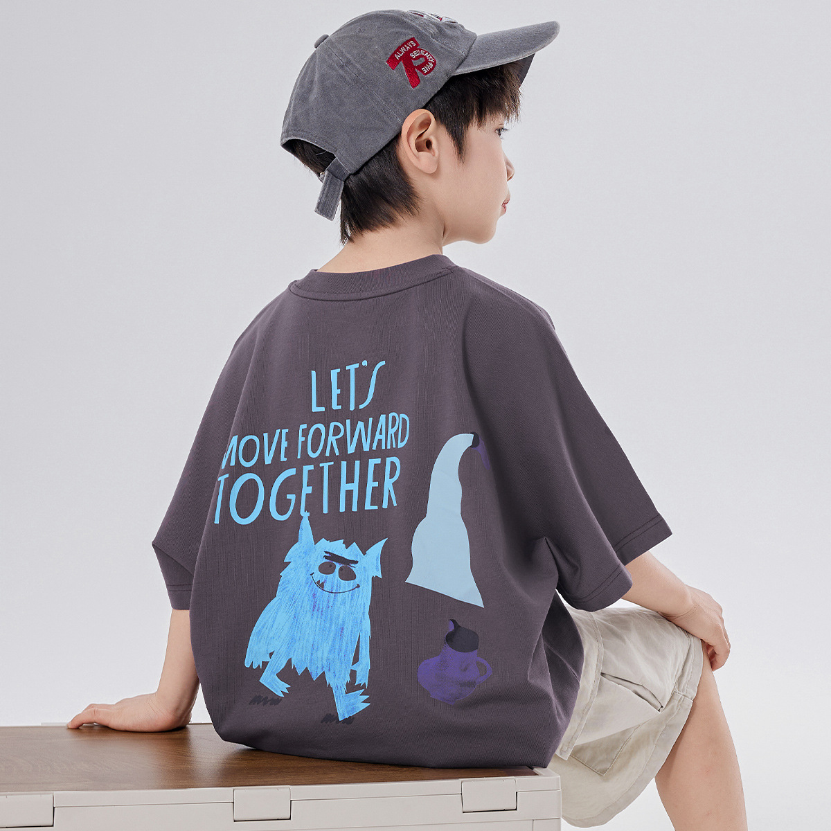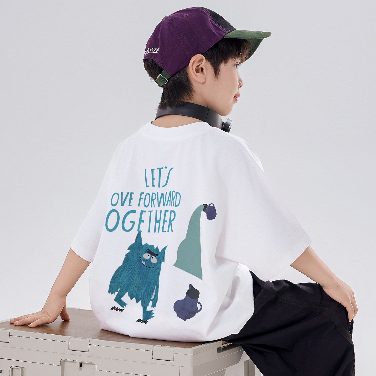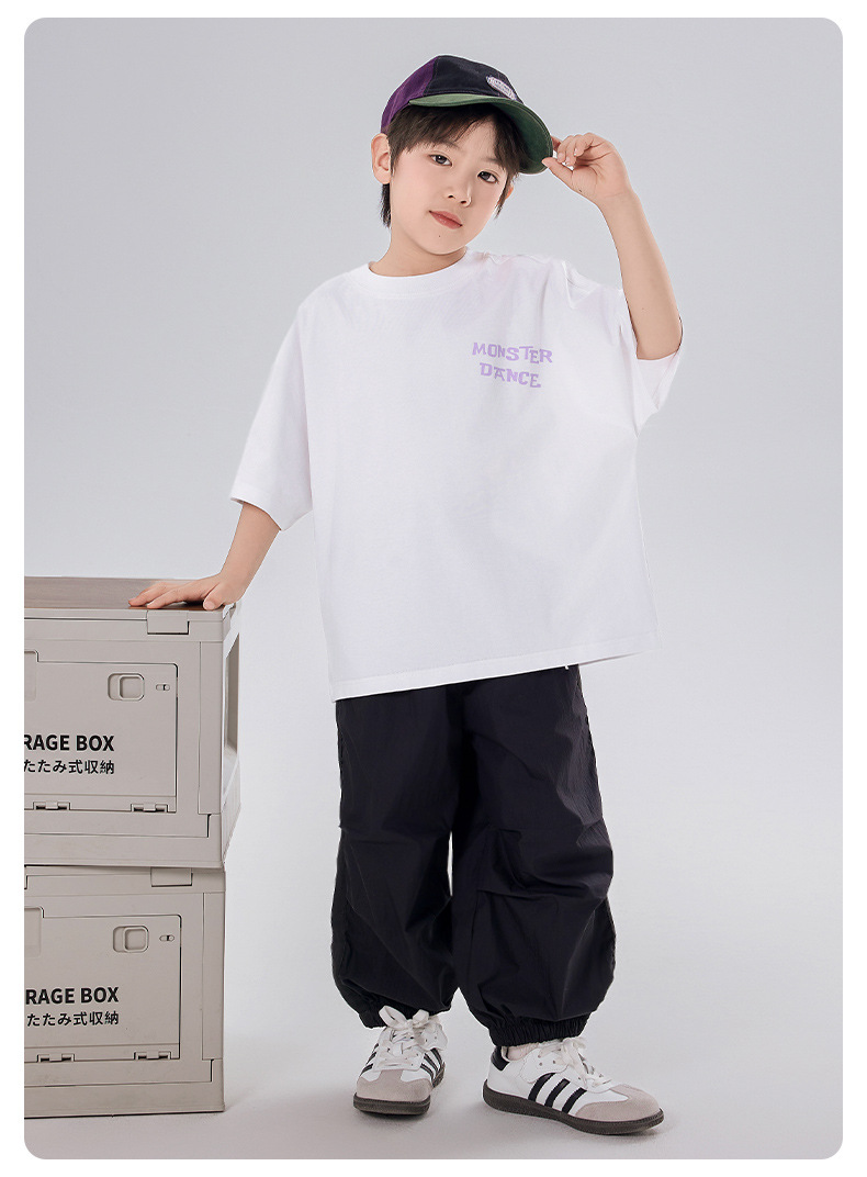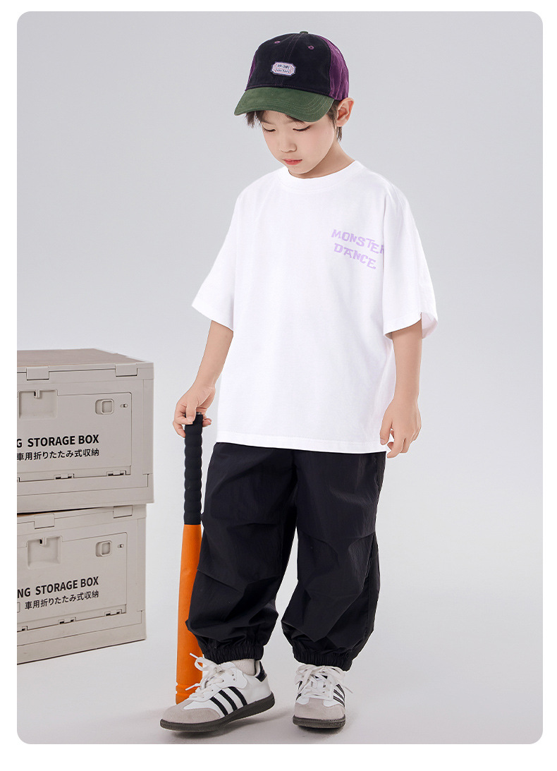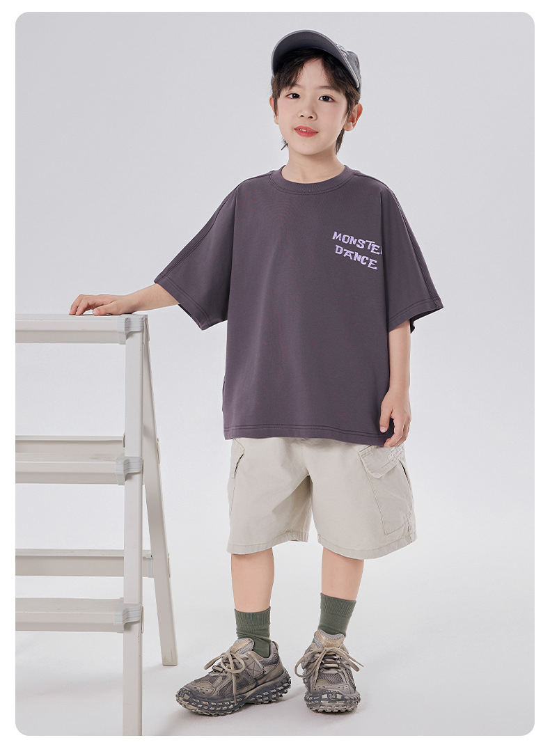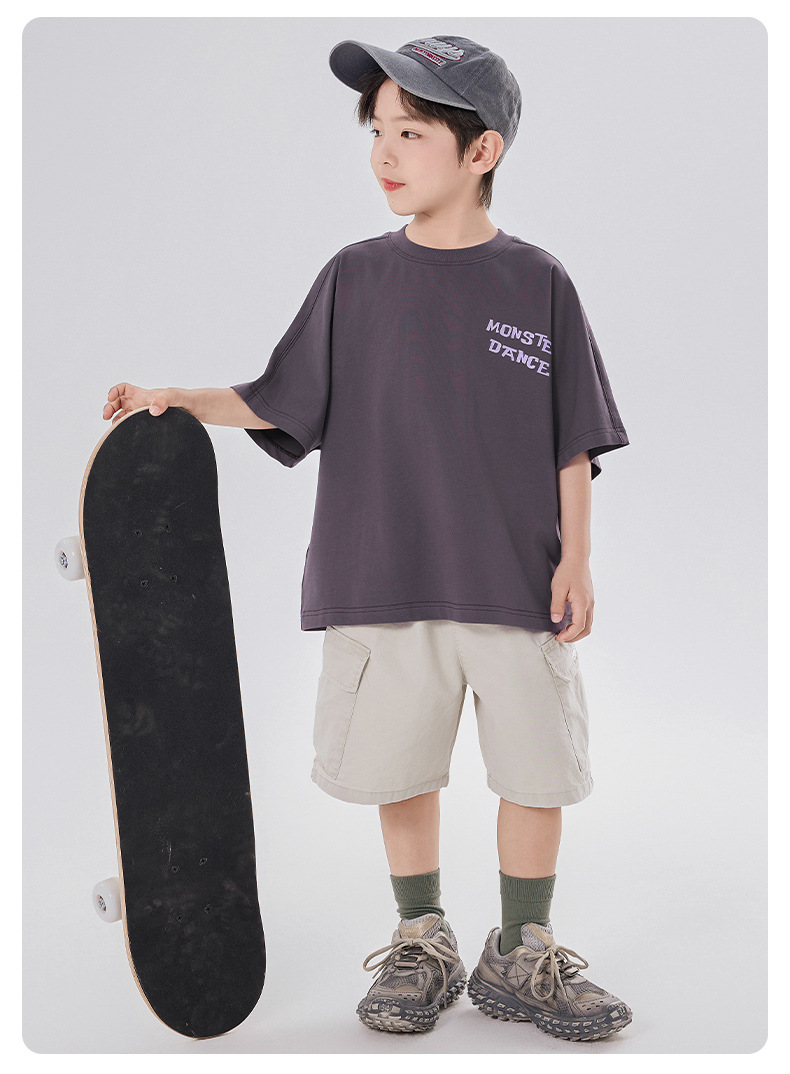 소년 티셔츠 반팔 여름 옷 2025 새로운 스타일 중대형 어린이 만화 프린트 오프 숄더 루즈 아동용 라운드 넥 반팔 트렌디 T스토어 가기