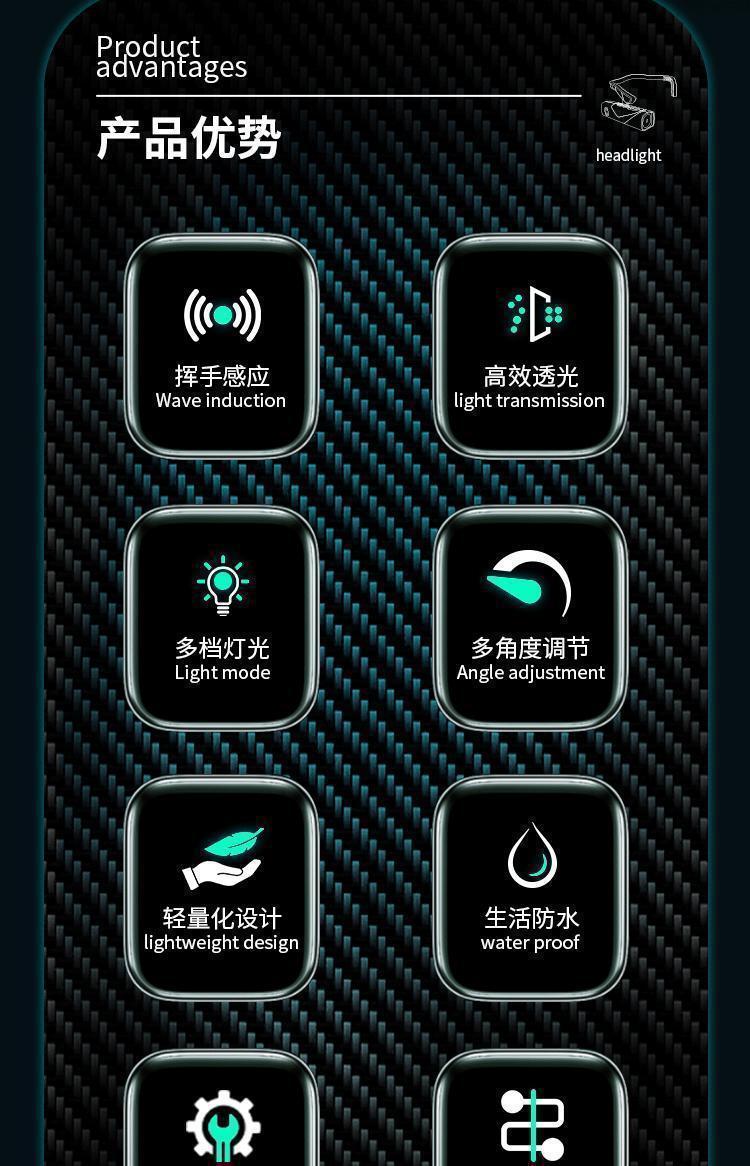 강한 빛을 충전하는 새로운 헤드라이트, 야외 작업용 초고휘도, 등산용 초경량 헤드 장착형 유도 조명스토어 가기