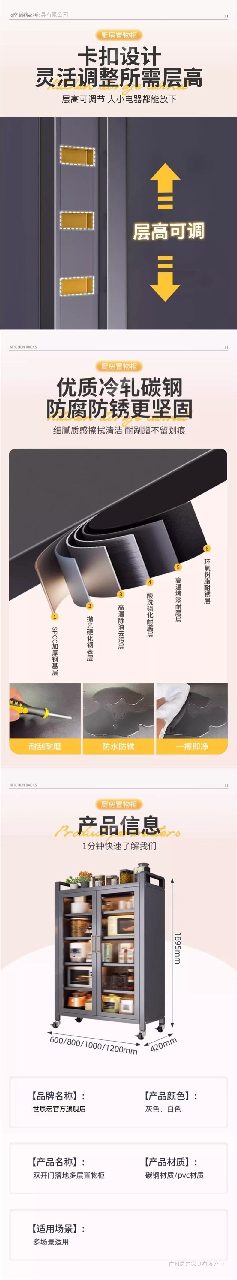 주방 수납 선반, 가정용 다층 양문형 다기능 수납 캐비닛, 바닥에서 천장까지의 배수 및 방진 수납 캐비닛, 찬장