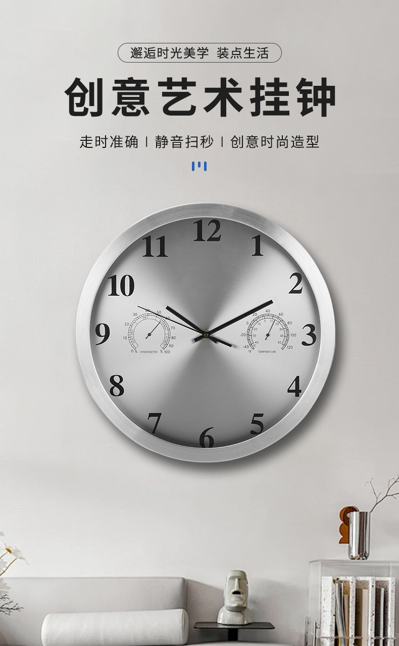2025년 가정용 시계 벽시계 거실 심플 쿼츠 시계 무소음 레트로 장식 시계 벽걸이형