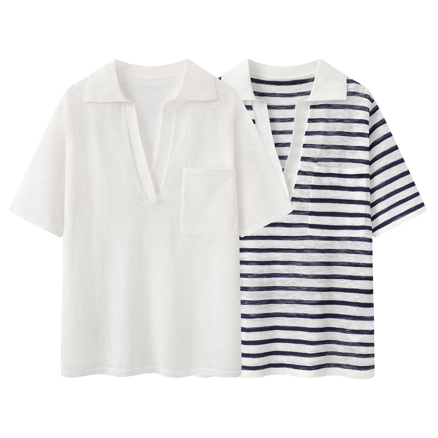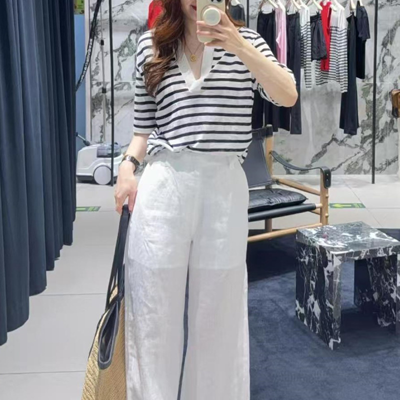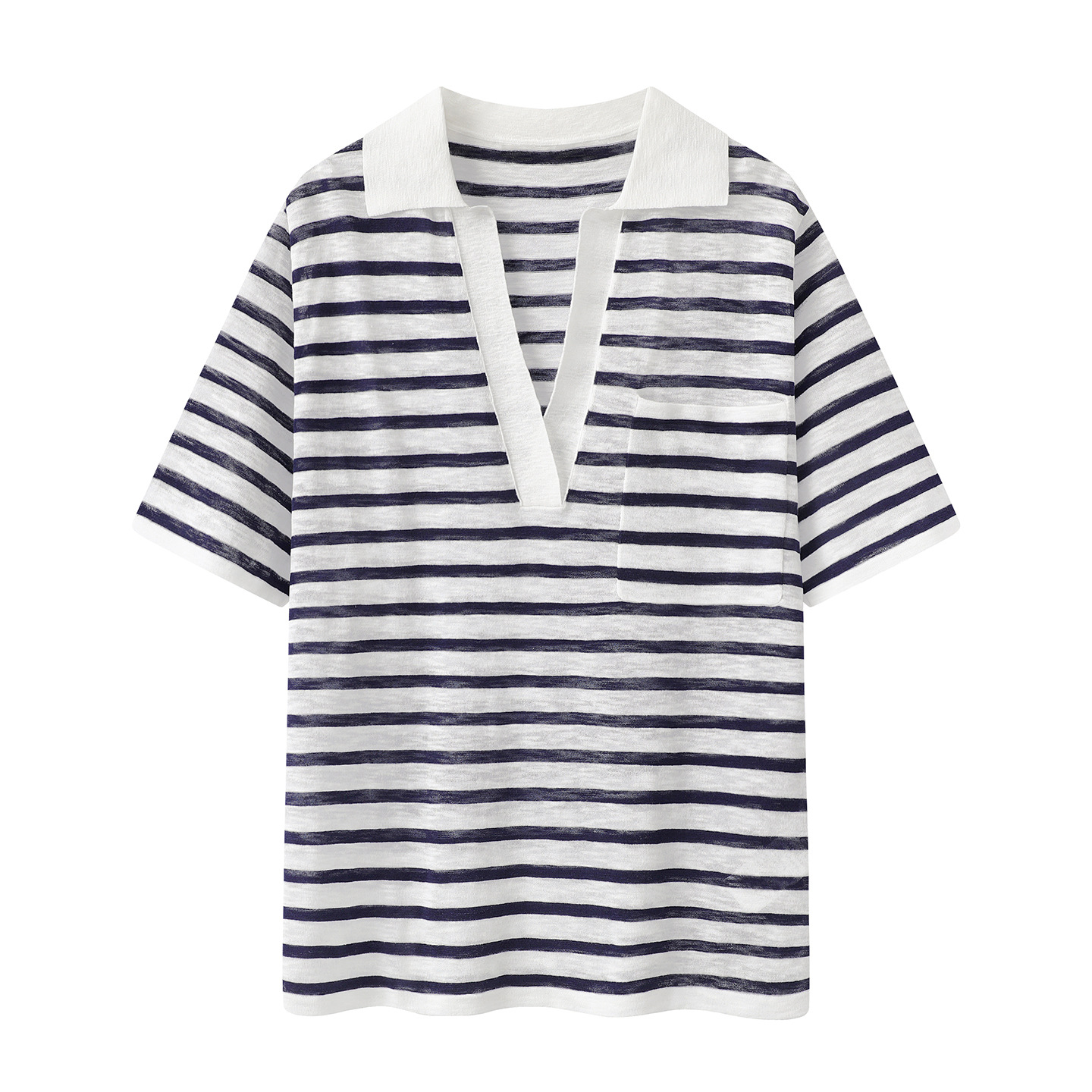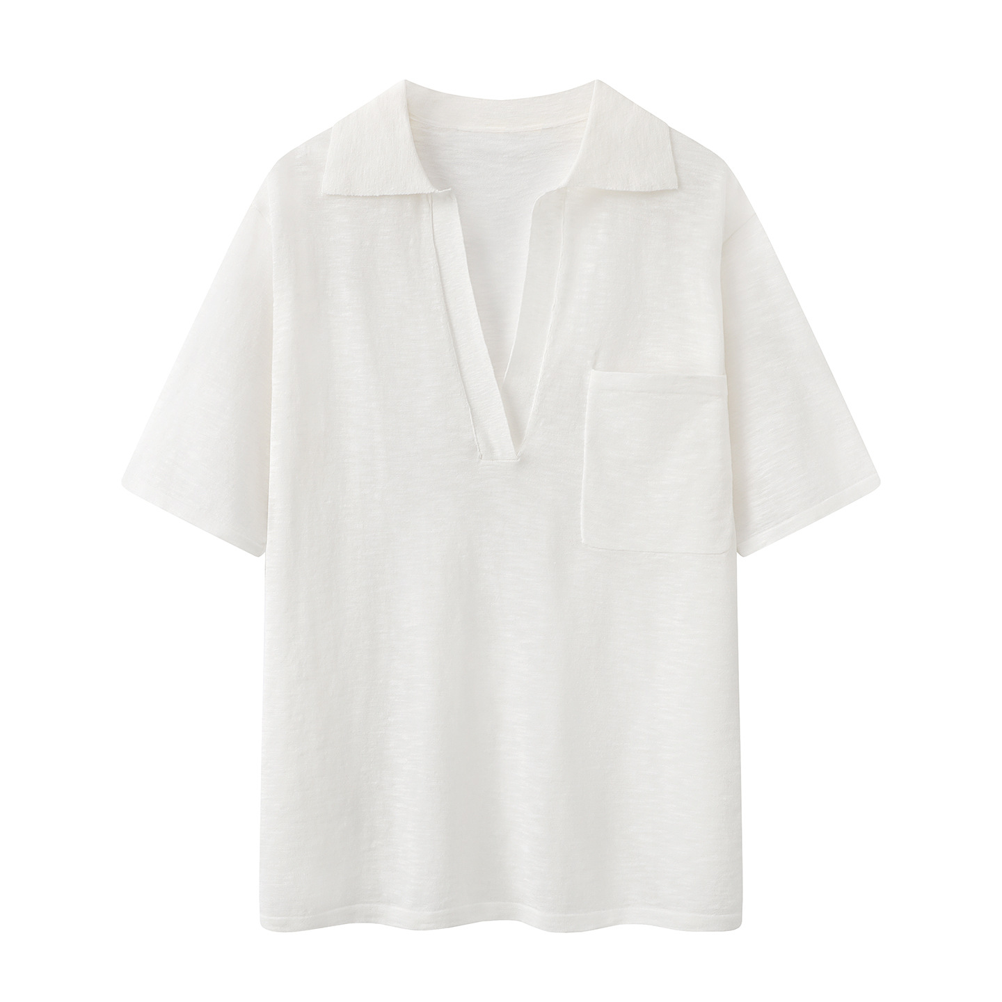 2025 여름 신작 패셔너블하고 다재다능한 라펠 루즈 슬리밍 스웨터 폴로 칼라 탑 여성 MBE2SWT001