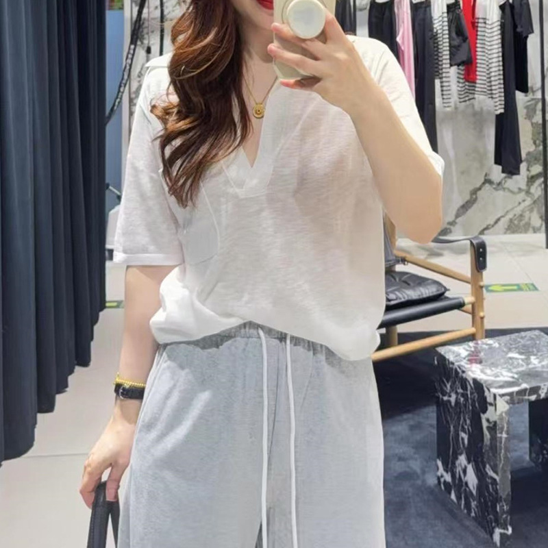 2025 여름 신작 패셔너블하고 다재다능한 라펠 루즈 슬리밍 스웨터 폴로 칼라 탑 여성 MBE2SWT001스토어 가기