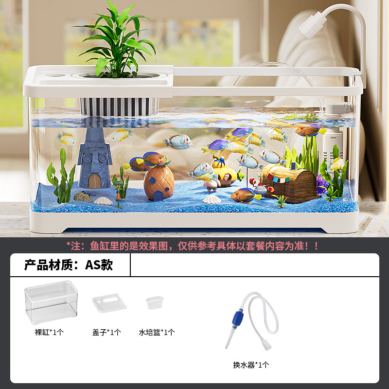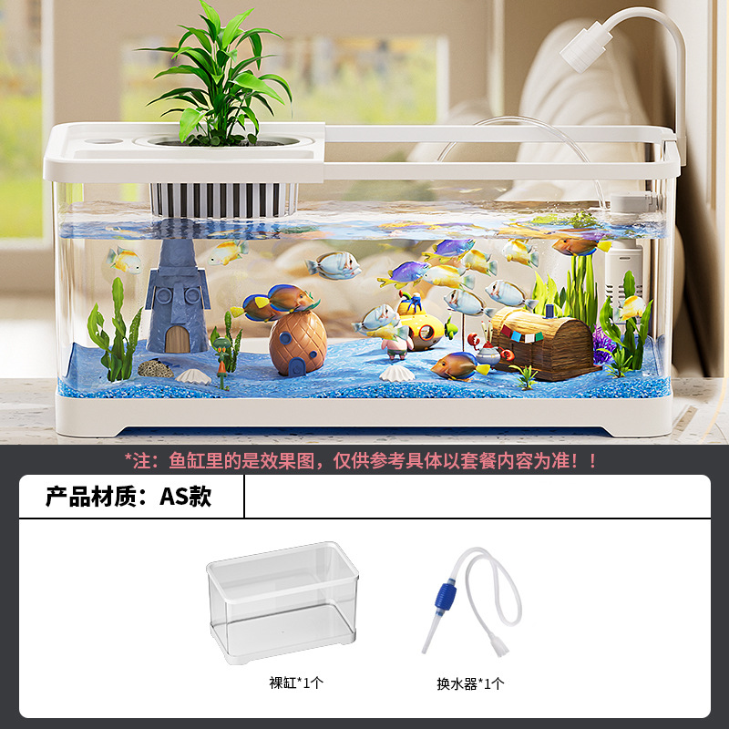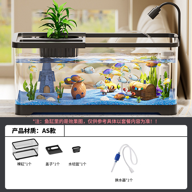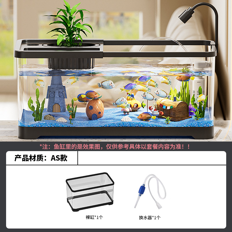 가정용 수조, 수족관, 거실 데스크탑, 생태 순환 탱크, 필터 및 산소화 일체형 탱크, 뚜껑이 있는 조경 금붕어 탱크