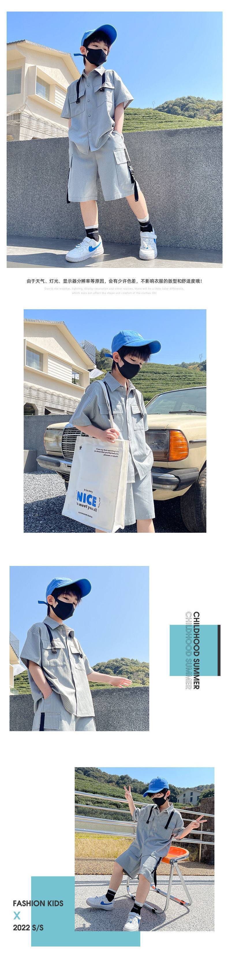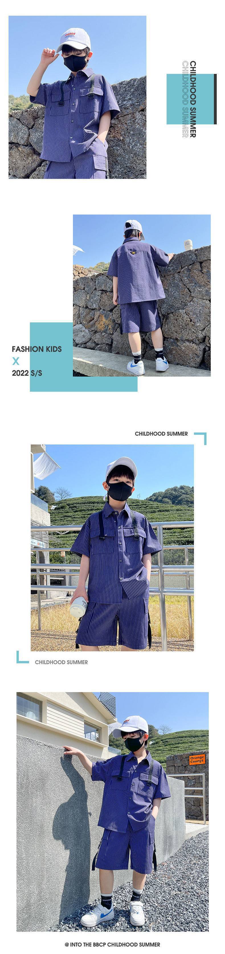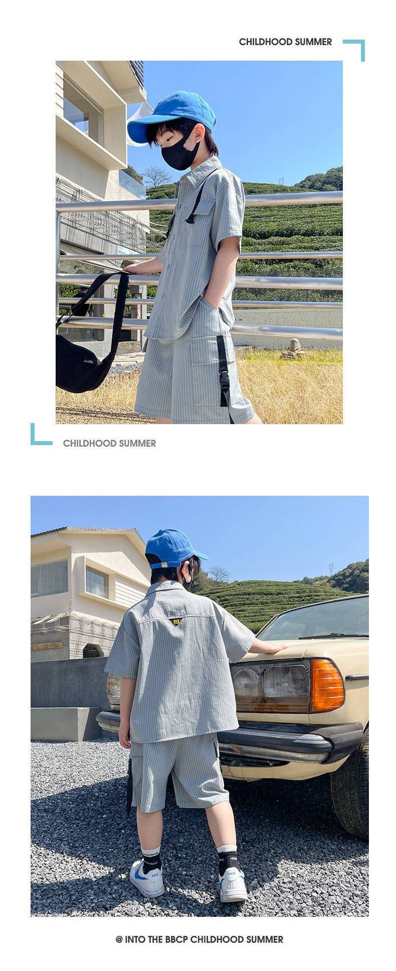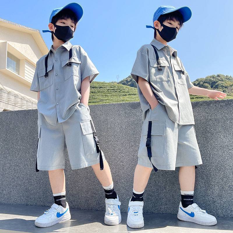 소년 정장 여름 2025 큰 어린이를위한 새로운 어린이 여름 옷, 멋진 소년의 멋진 유행 캐주얼 셔츠스토어 가기
