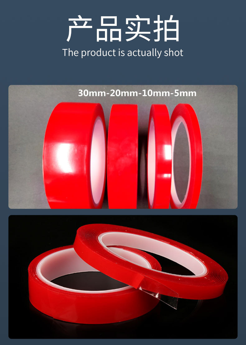 흔적 없는 투명 아크릴 양면 테이프 강력한 내열성 1mm*3M 양면 테이프 방수 레드 필름 아크릴 양면 테이프