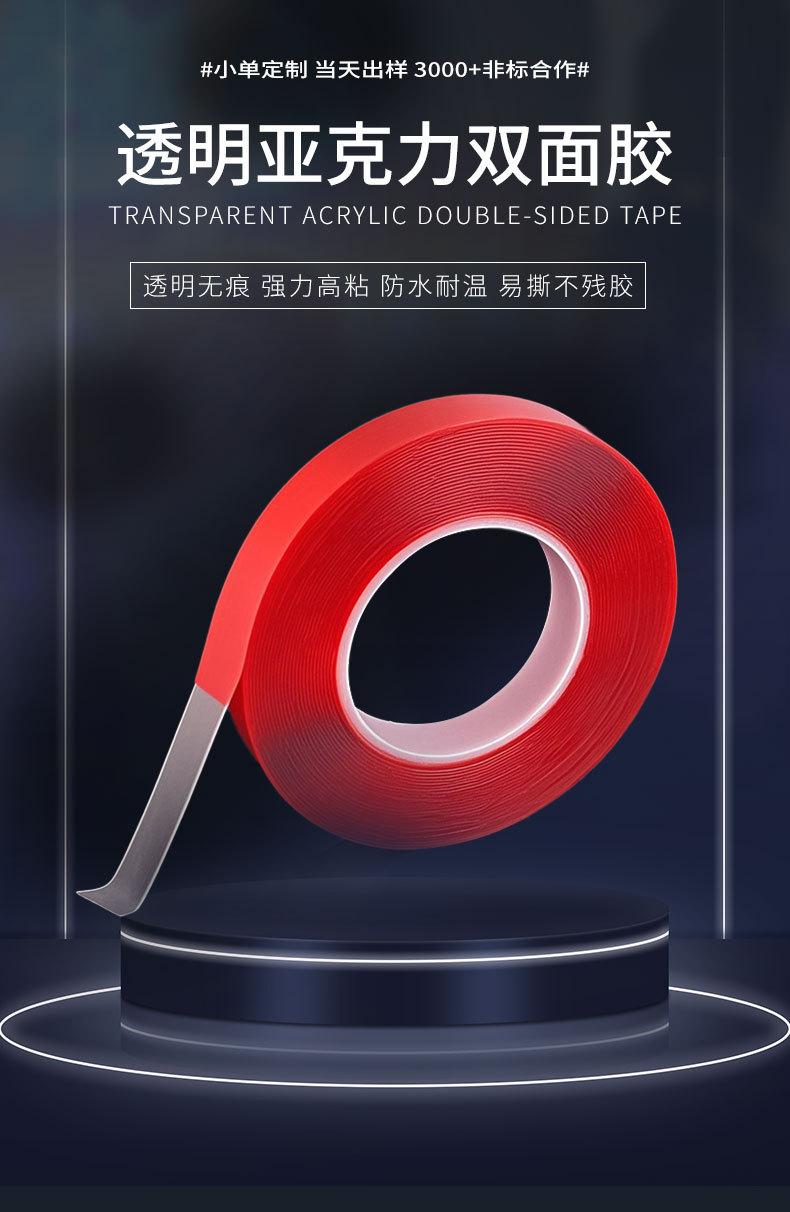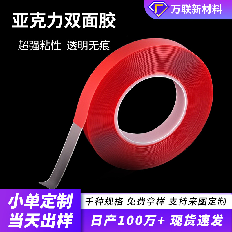 无痕透明亚克力双面胶强力耐温1mm*3M双面胶防水红膜亚克力双面胶