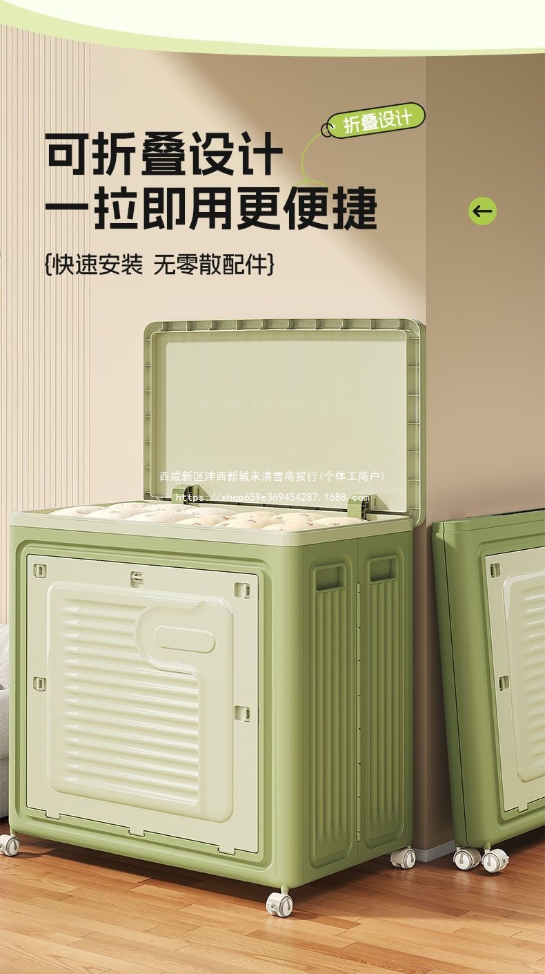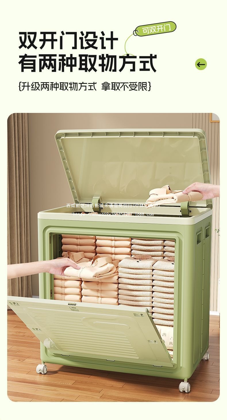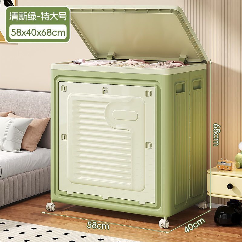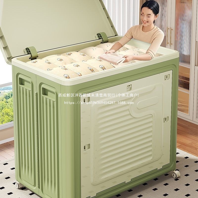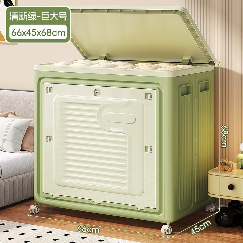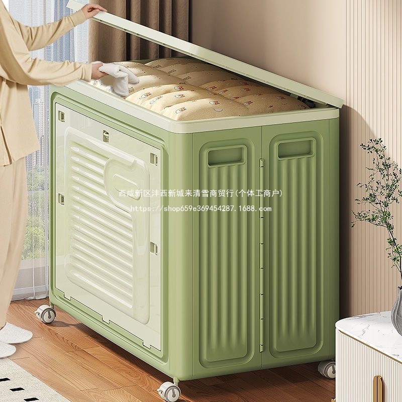 188L 옷과 이불 보관함, 초대형 용량, 앞면 개방형 접이식 보관함, 바퀴가 달린 정리함