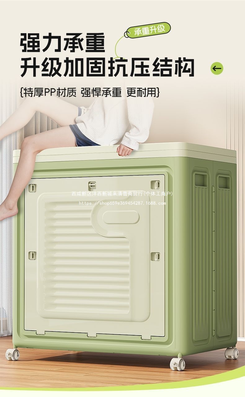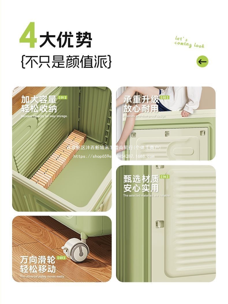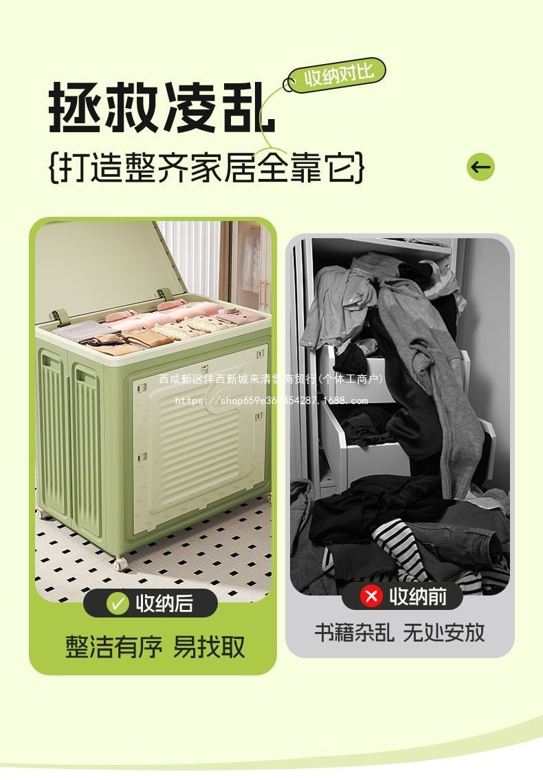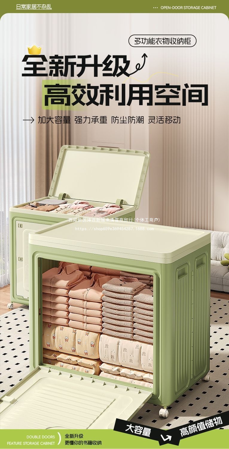 188L 옷과 이불 보관함, 초대형 용량, 앞면 개방형 접이식 보관함, 바퀴가 달린 정리함