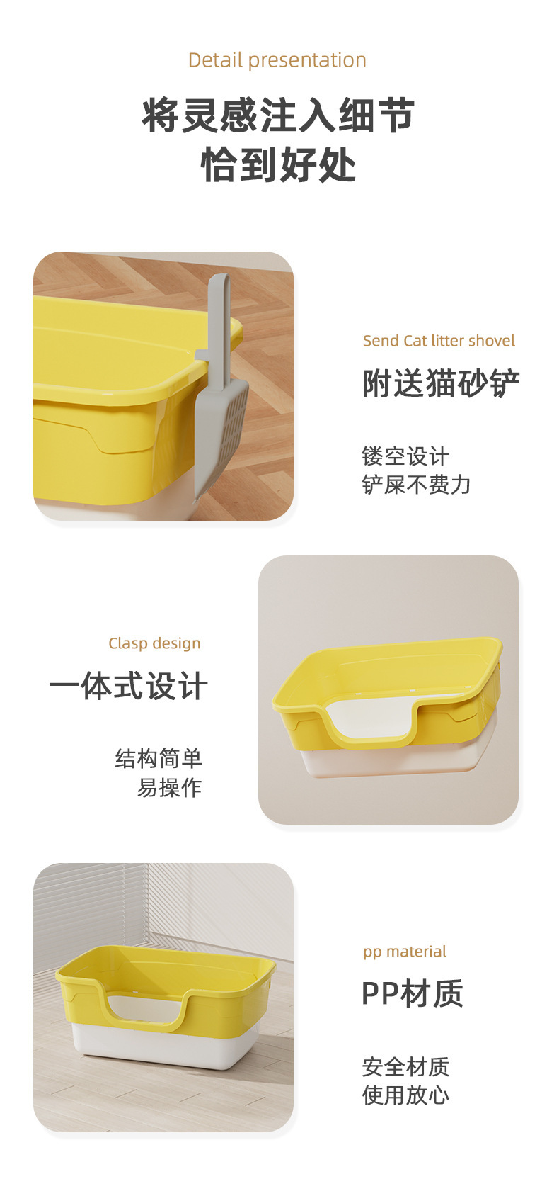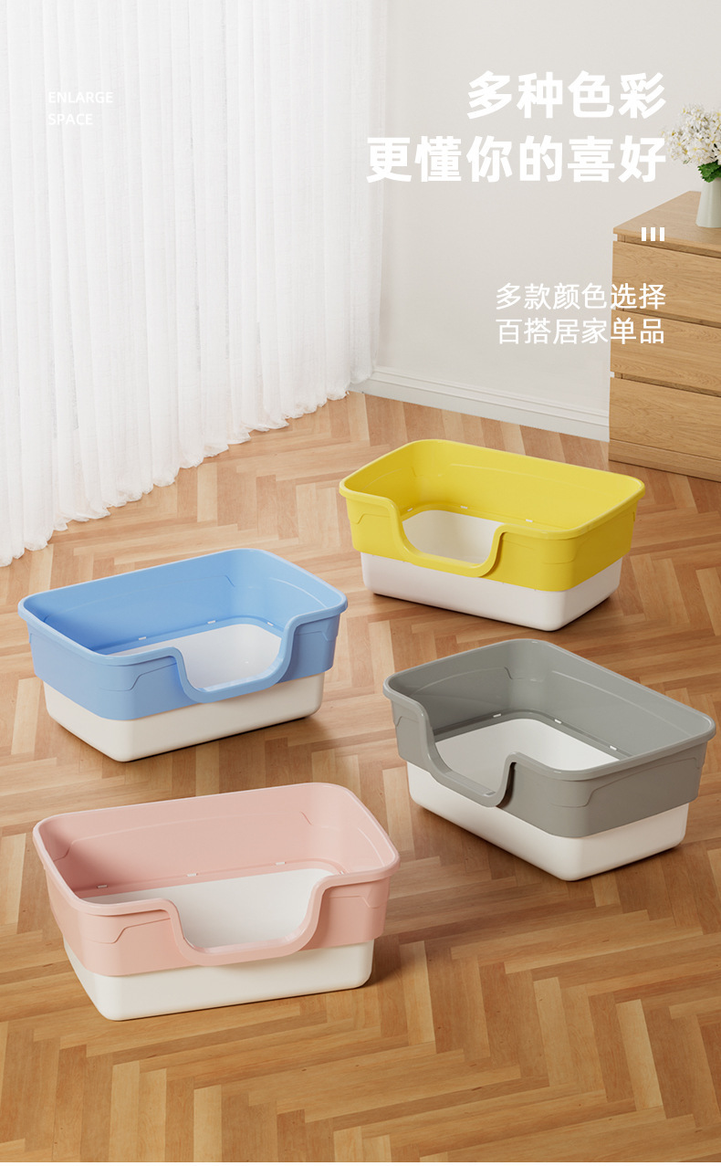 대형 고양이 화장실 일체형 두꺼운형 비산방지 고양이 화장실 오픈형 고양이 청소용품 애완 고양이용