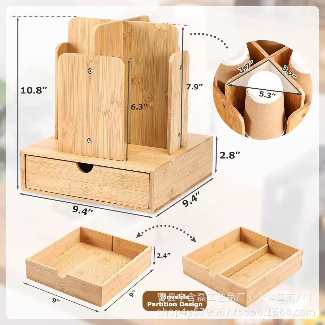 데스크탑 나무 종이컵 홀더 바 티룸 커피 캡슐 보관함 일회용 컵 보관함