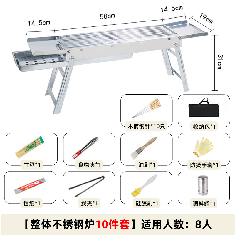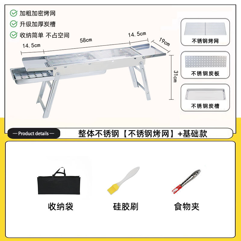 스테인레스 스틸 바베큐 그릴 가정용 접이식 휴대용 소형 그릴 바베큐 그릴 네트 야외 스토브 숯 선반