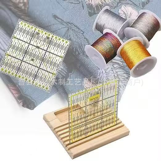 나무 눈금자 정리 데스크탑 단단한 패치 워크 눈금자 보관 일체형 DIY 스풀 랙 바느질 도구 보관 랙