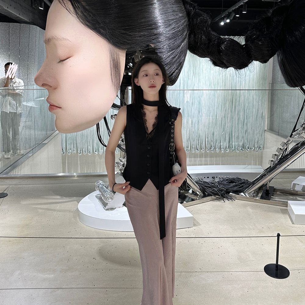 핫 소녀 섹시한 레이스 조끼 여성 의류 2025 여름 새로운 민소매 조끼 조끼 탑 내부 재킷 대형스토어 가기
